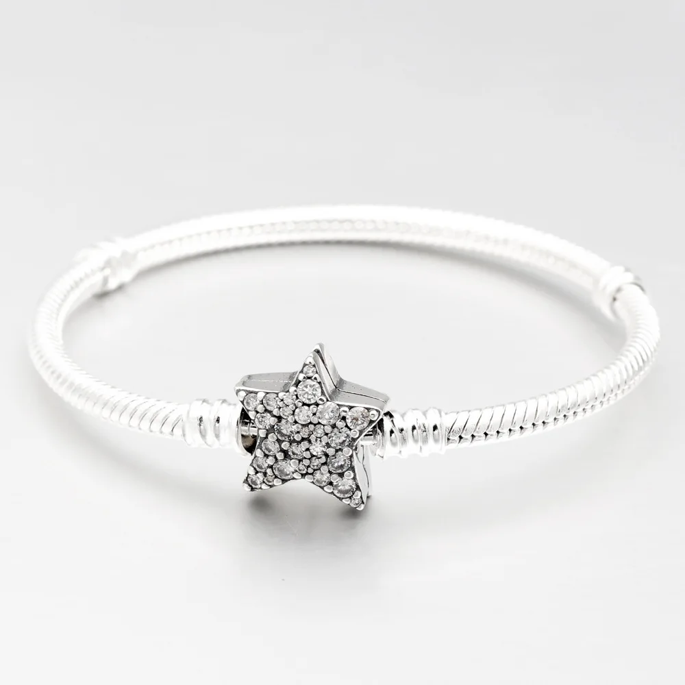 925 Sterling Silver DIY Charm Bracelet for Children Trendy New Love Buckle Pave Logo Heart Shape Zircon Stone Wholesale Jewelry
