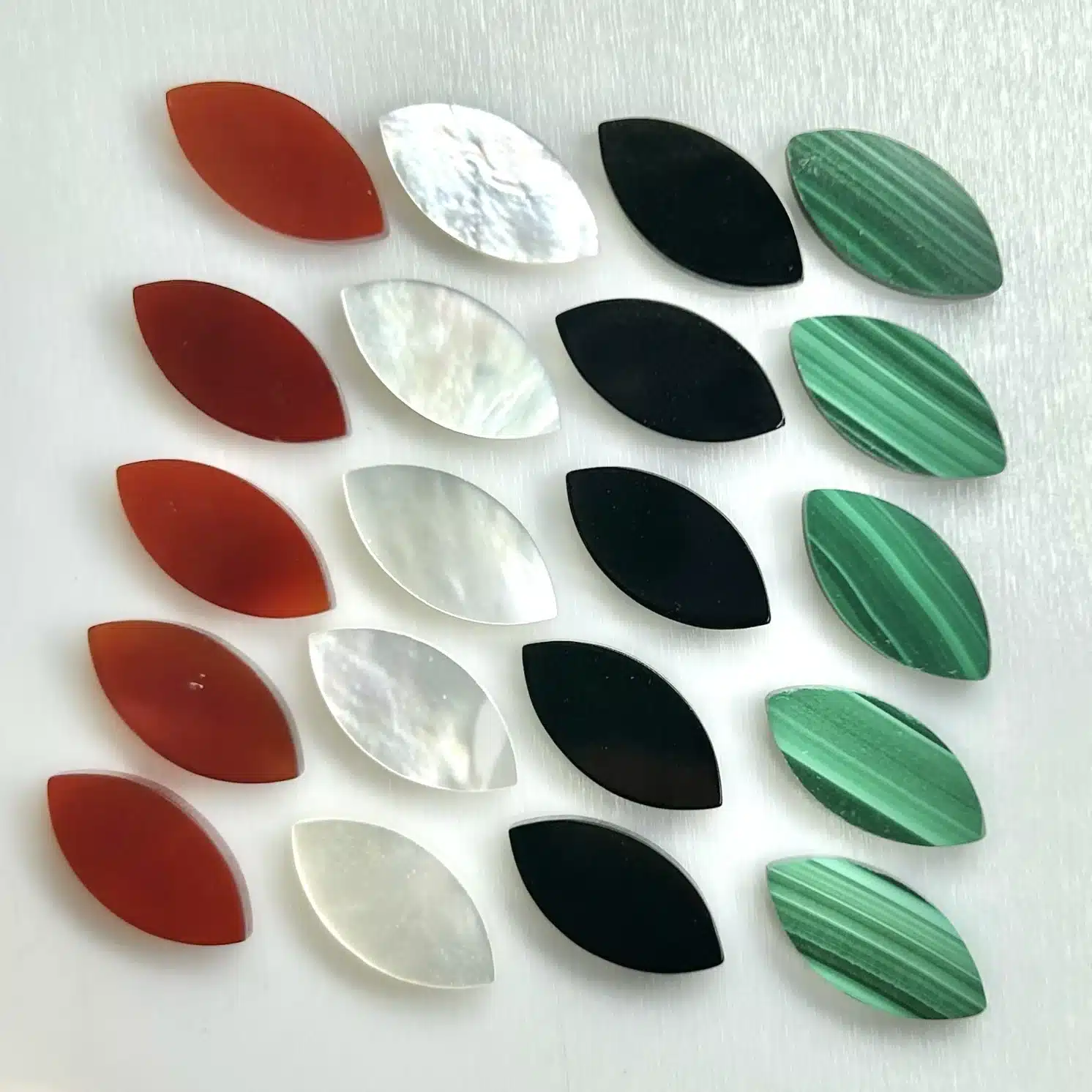 HQ GEMS 7×14.3mm Leaf Shape 2.2mm Thickness Natural Gemstones Black Onyx Red Agate White Mother of Pearl Shell