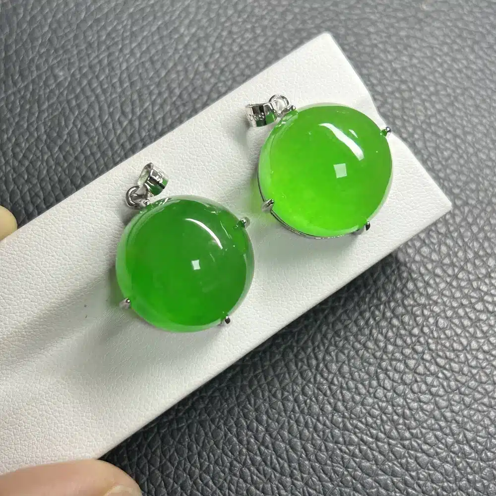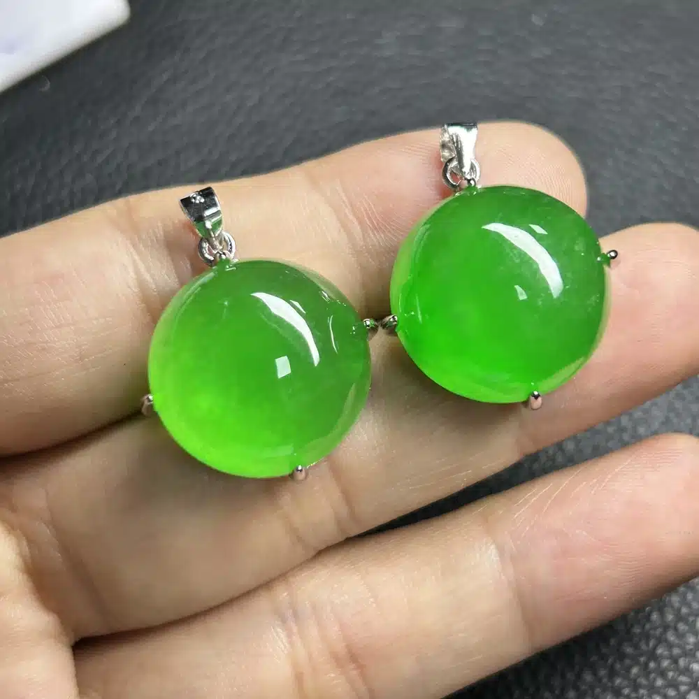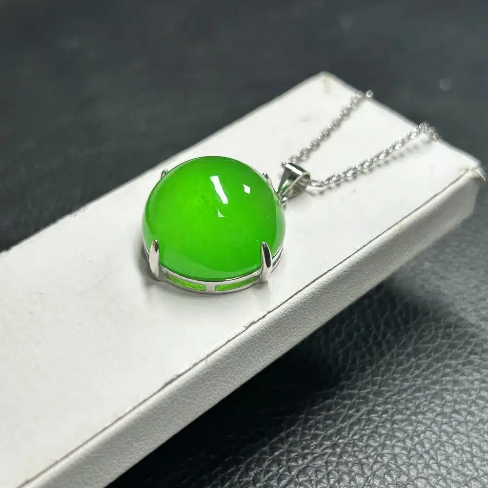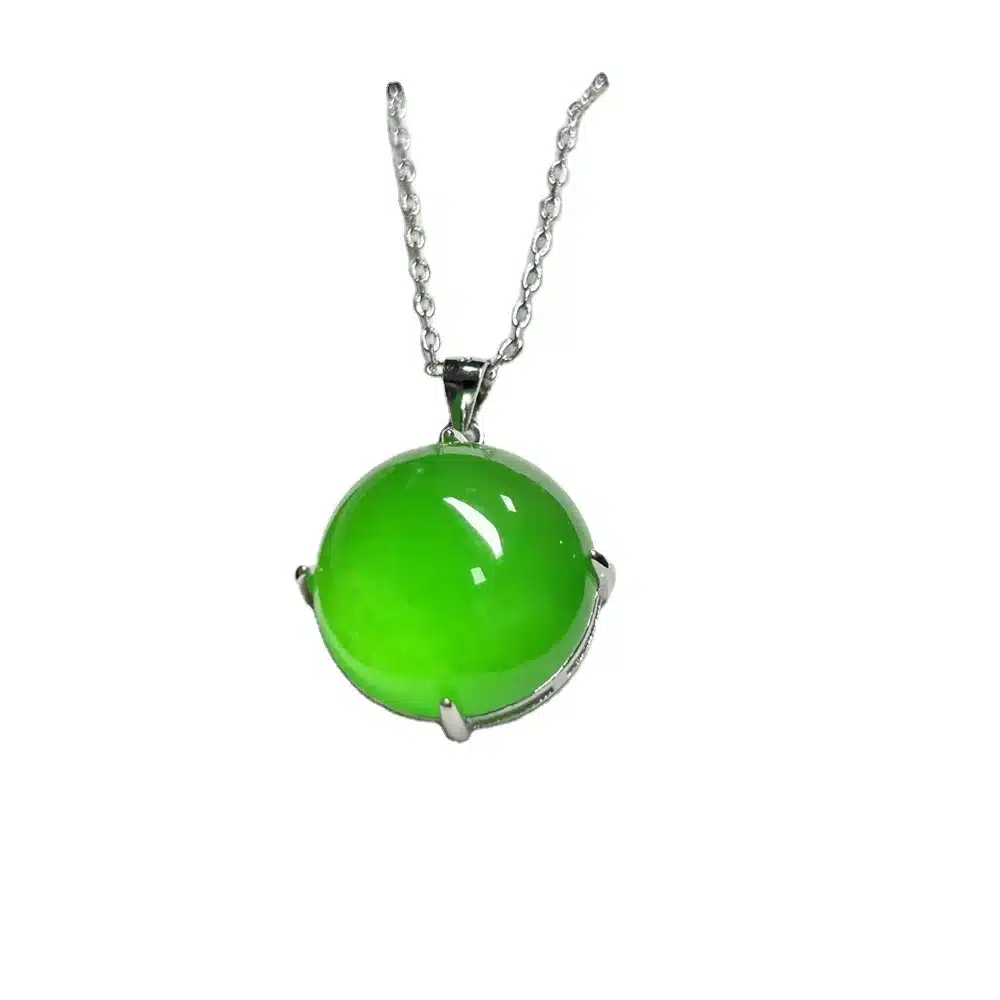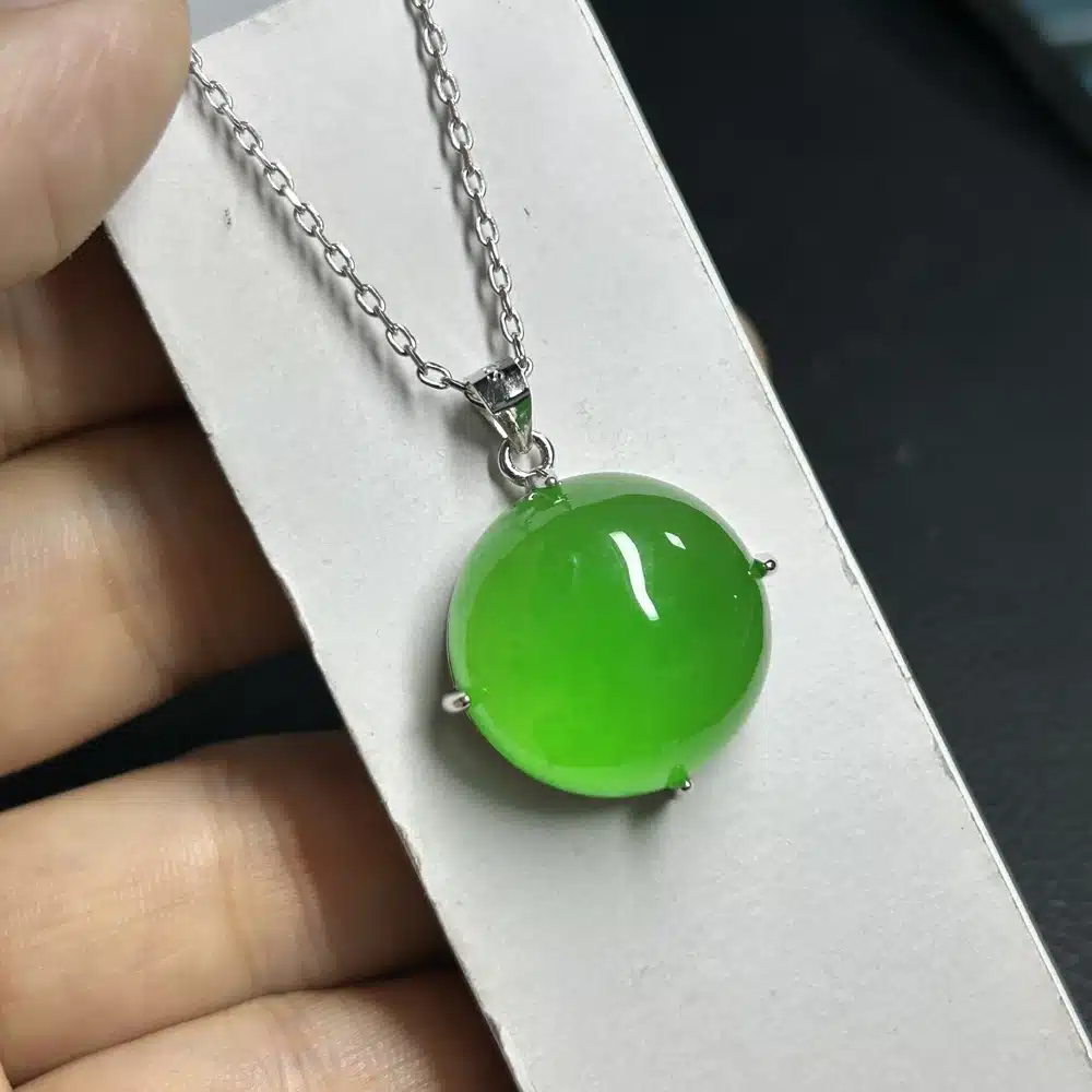 HQ GEMS Round Sliver S925 Charm Original Burma Jade Stone Pendant Necklace