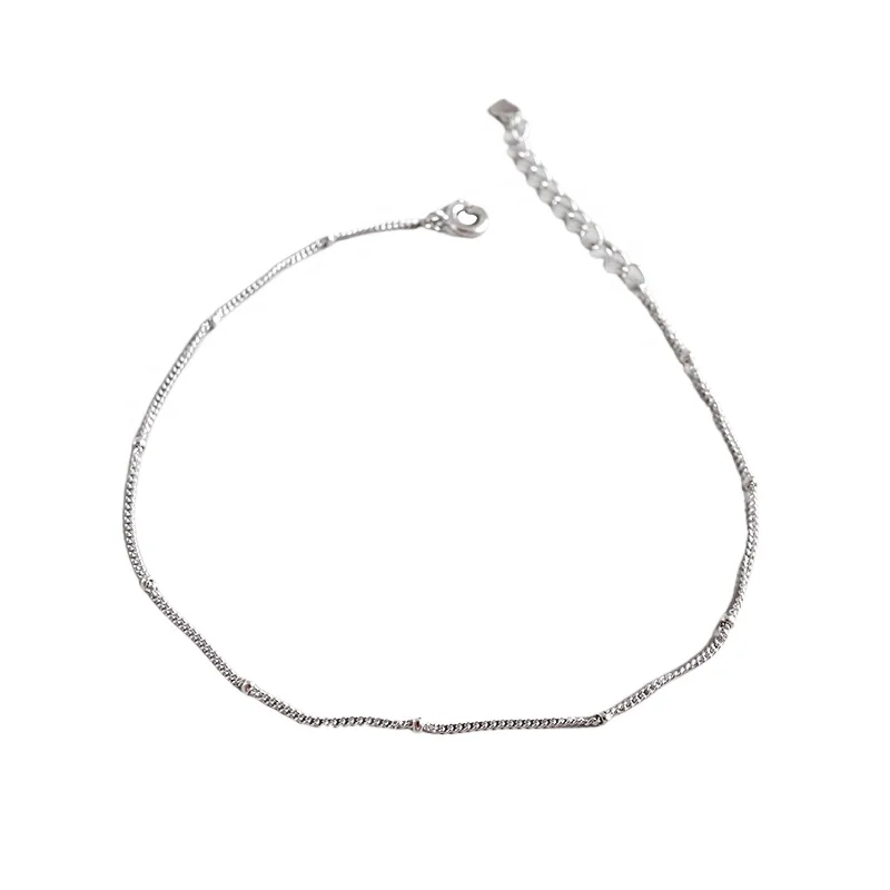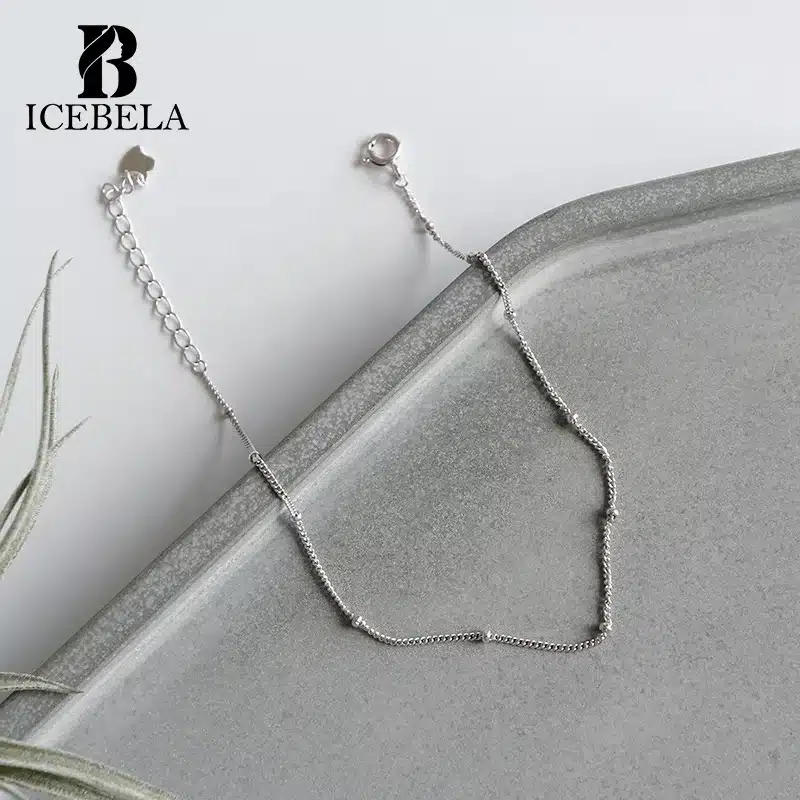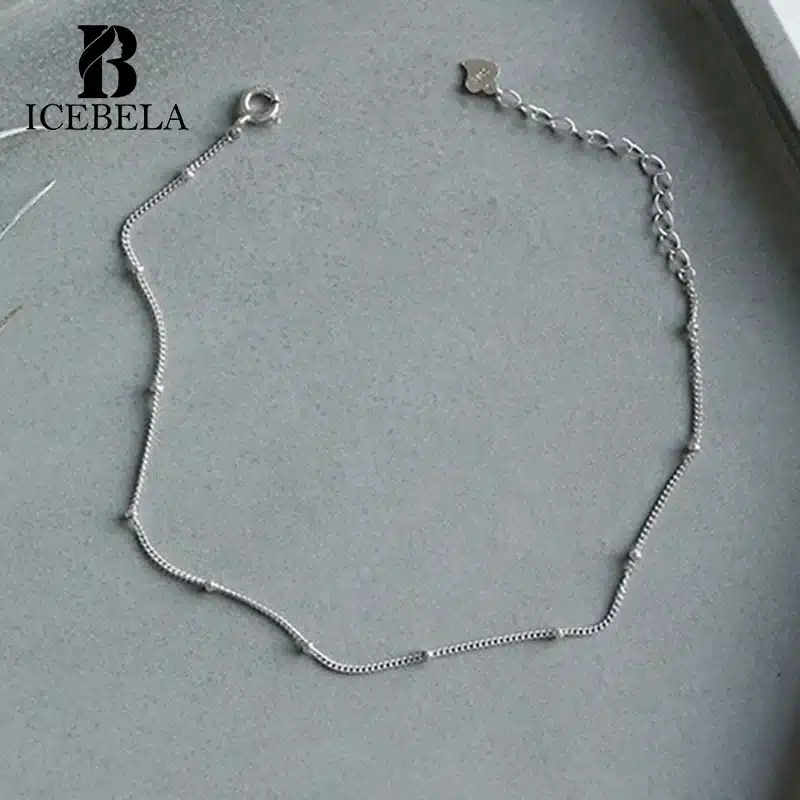 ICEBELA Fine Jewelry Summer Girl Fashion 925 Sterling Silver Chain Anklets Simple Round Bead Snake Chain Anklets for Women