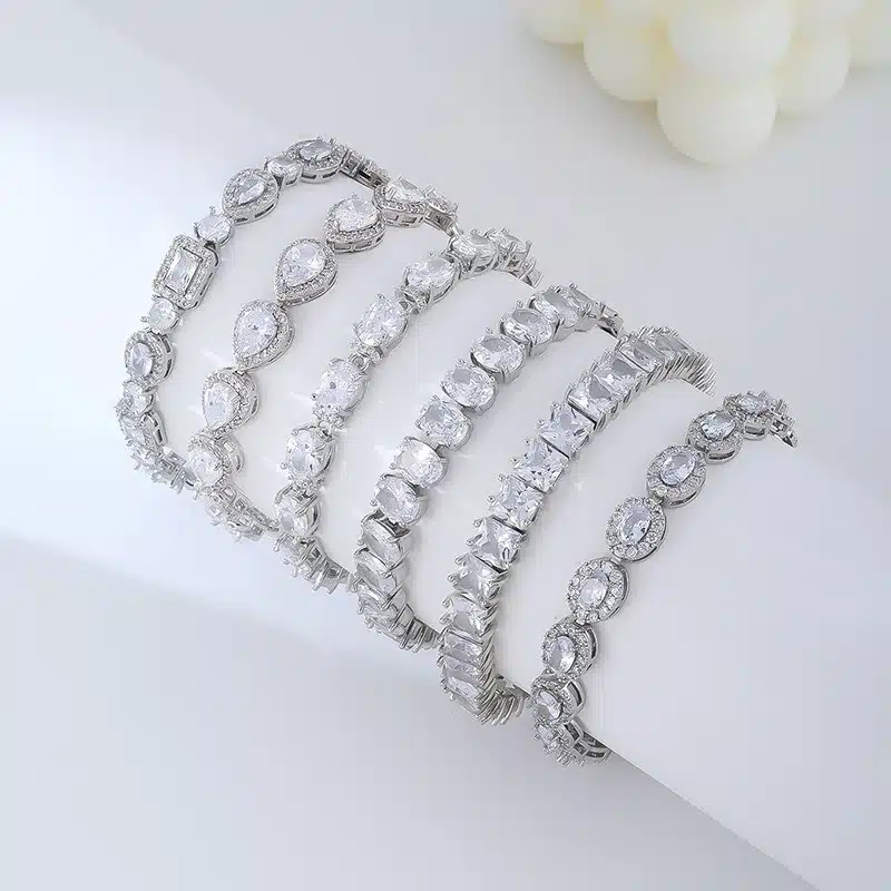Key attributes Material Type:Brass Jewelry Main Material:Brass Main Stone:ZIRCON Bracelets or Bangles Type:Tennis Bracelets Plating:Platinum Plated, 14K Gold Plated, Titanium