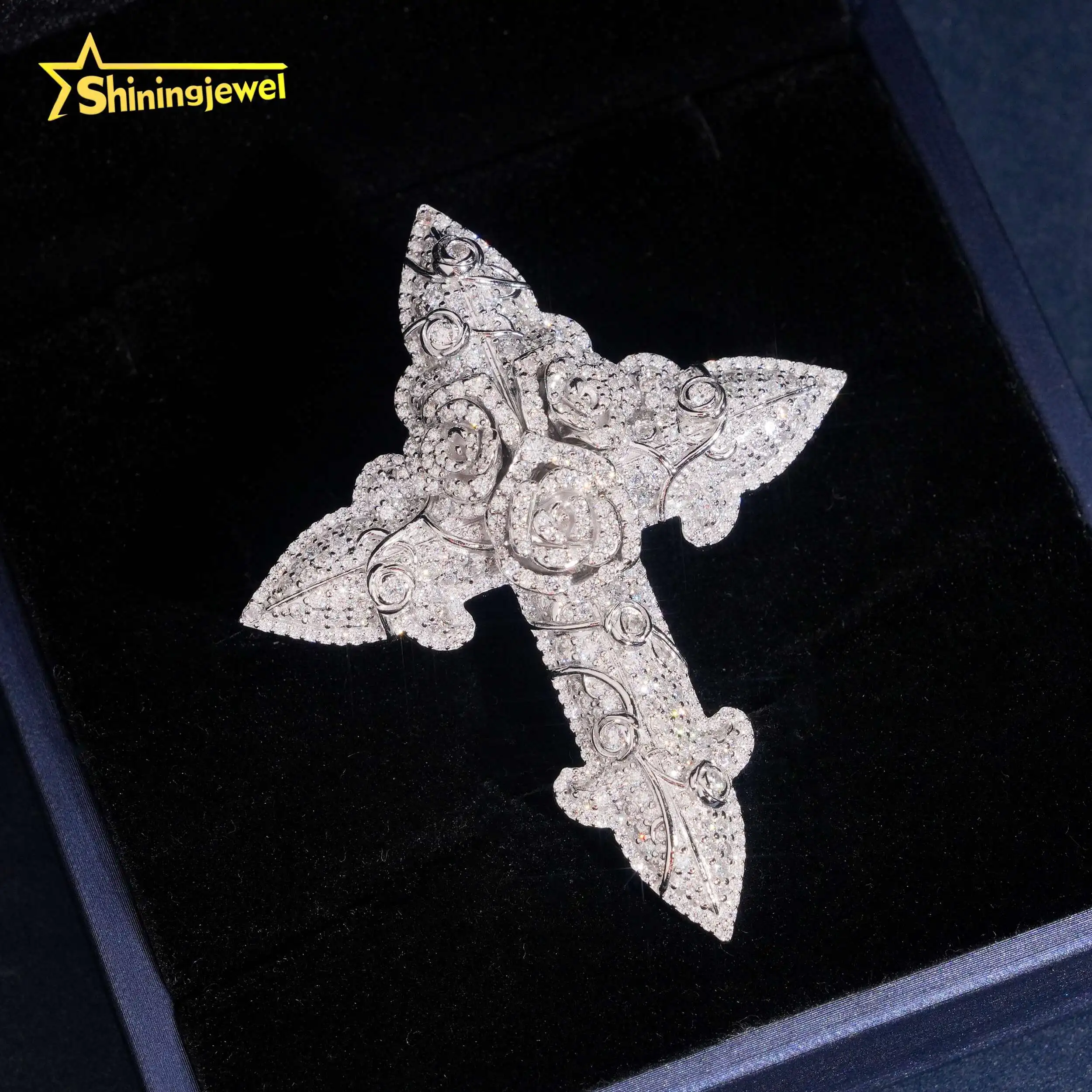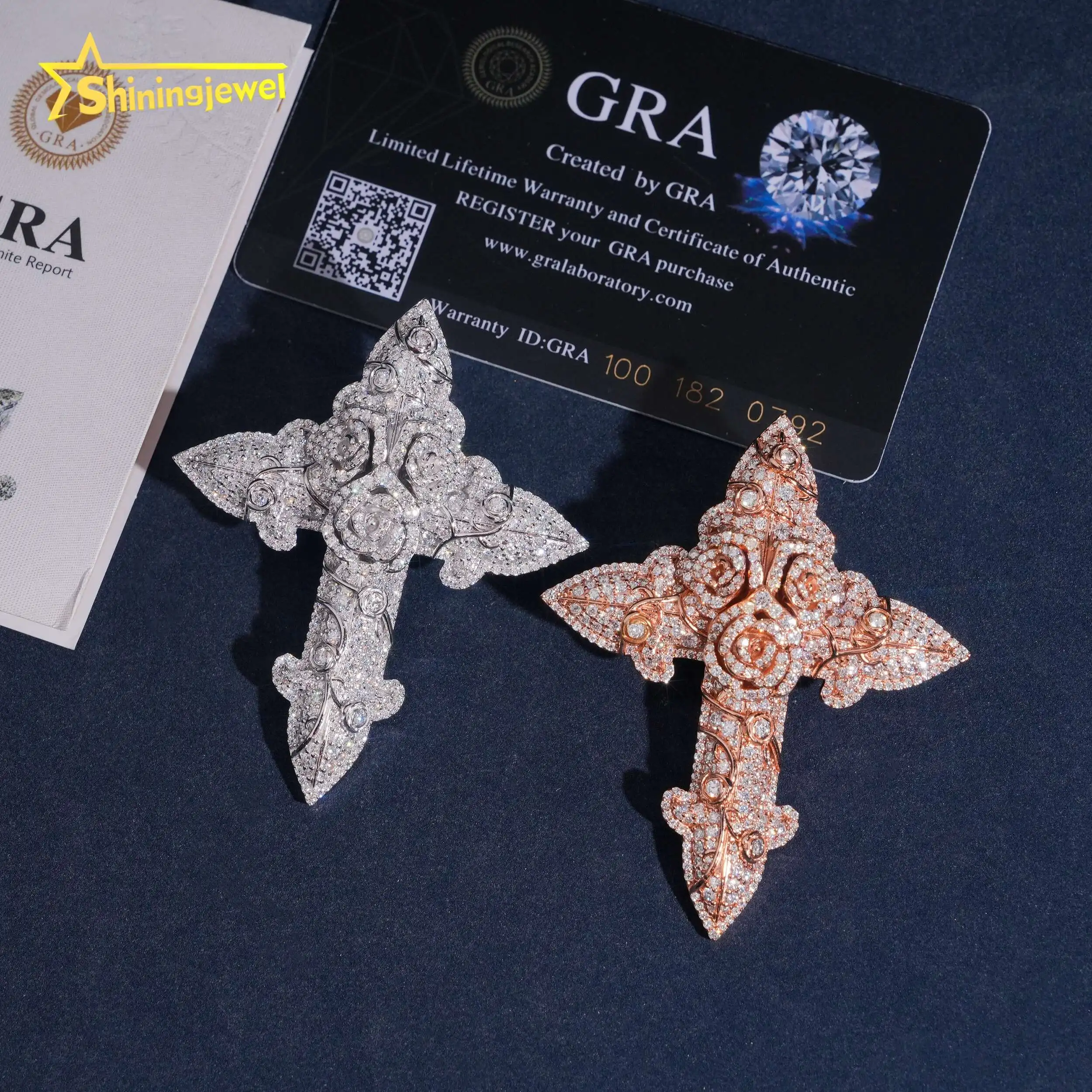 Instock Hip Hop Jewelry Iced Out Cross Pendant Moissanite Diamond Charm Solid 925 Sterling Silver Cross Pendant Pass Tester