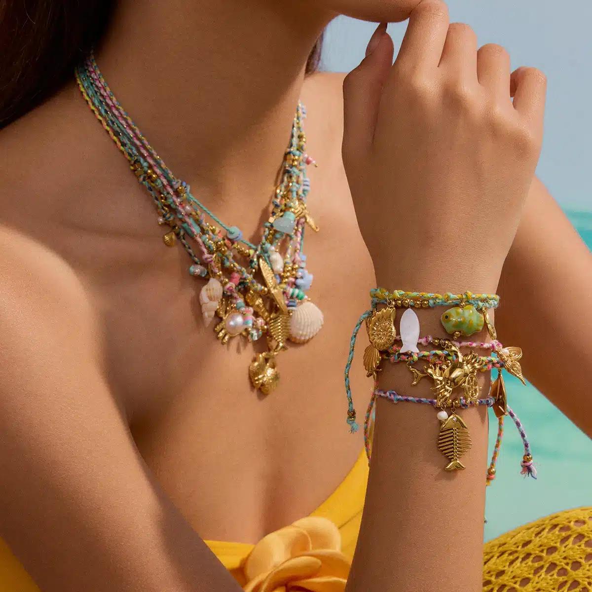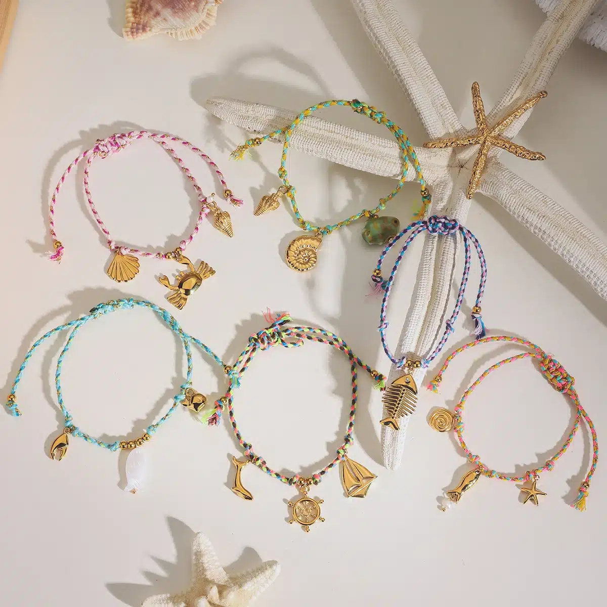 J&D 18K Gold Plated Stainless Steel Summer Beaded Bracelet Colorful String Ocean Charm for Beach Vacation Jewelry