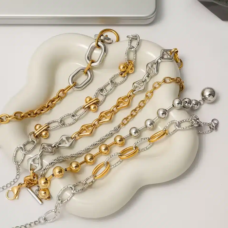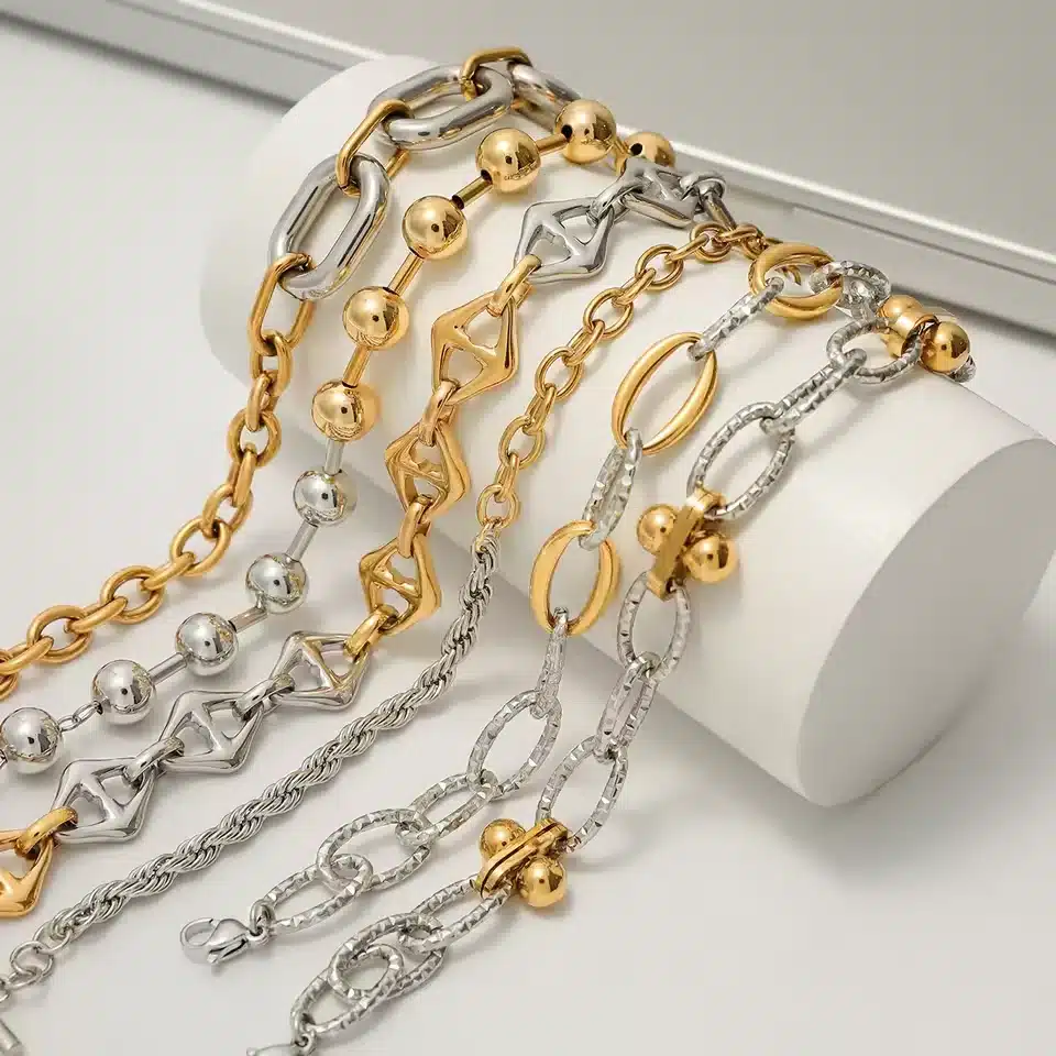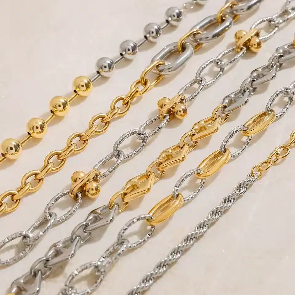 J&D Best Selling Stainless Steel 18k Gold Plated Two Tone Fried Dough Twists Chain Cross Chain Bracelets