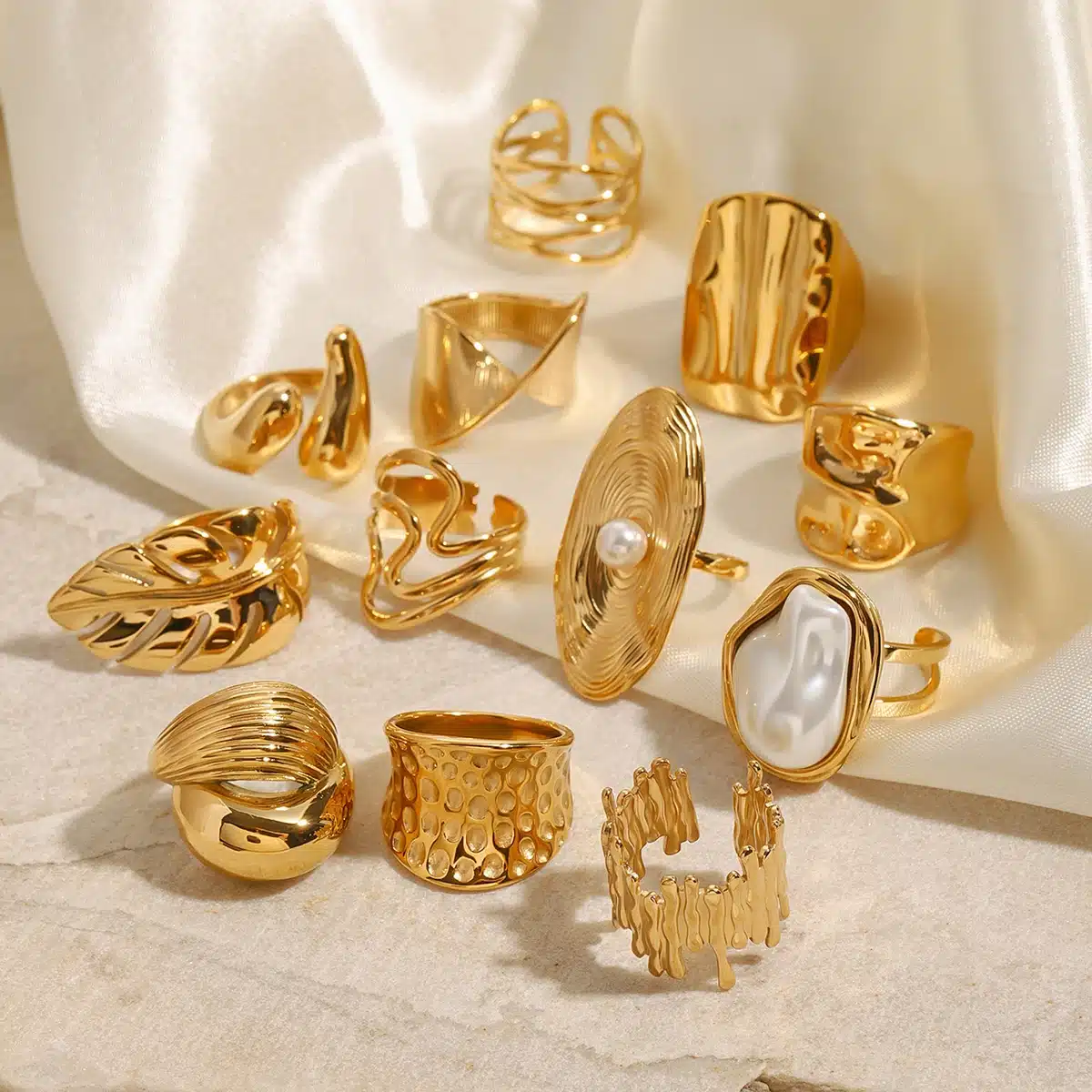 Be the first to review “J&D Chunky Luxury Stainless Steel 18K Gold Plated Big Baroque Pearl Textured Irregular Rings” Cancel reply