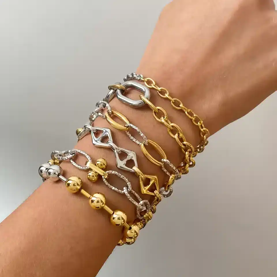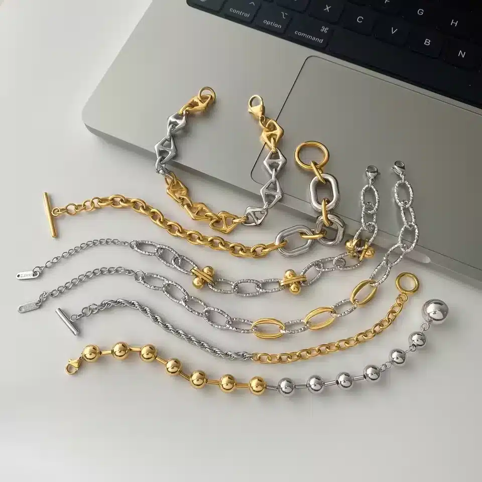 J&D Minimalist Two Tone Chain Bracelet Stackable 18k Gold Plated Chain Dainty Wedding Jewelry Modern Layered Aesthetic Trending