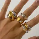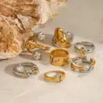 Be the first to review “J&D Modern Chic 18K Gold Stainless Steel Rings Two-Tone Layered Ribbed Gold Silver Mixed Design Rings” Cancel reply