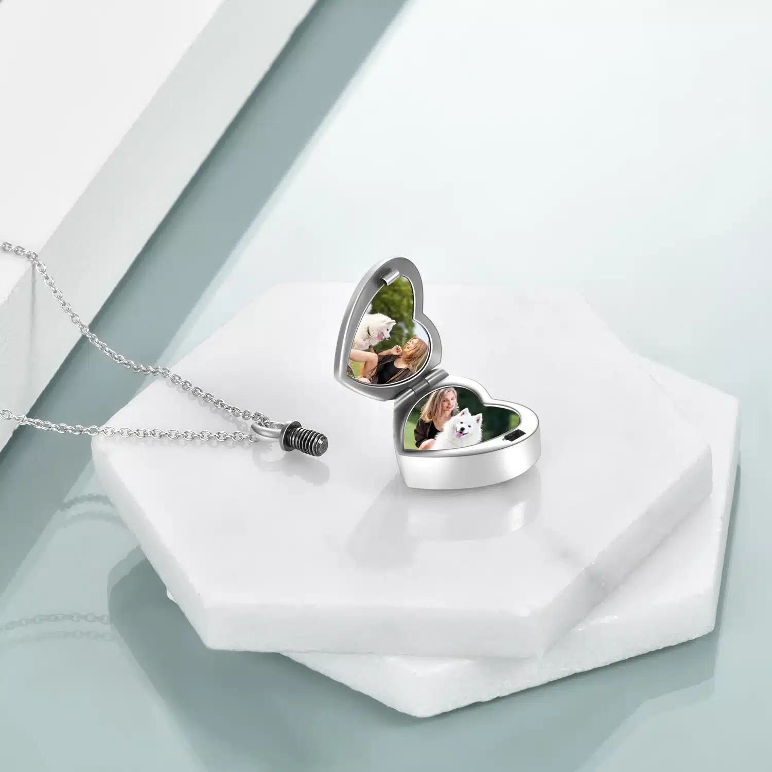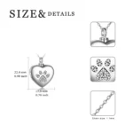 Jewelry 925 Sterling Silver Custom Dog Paw Heart Urn Pendant Necklace for Ashes