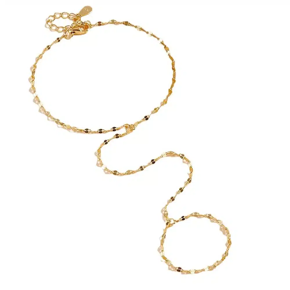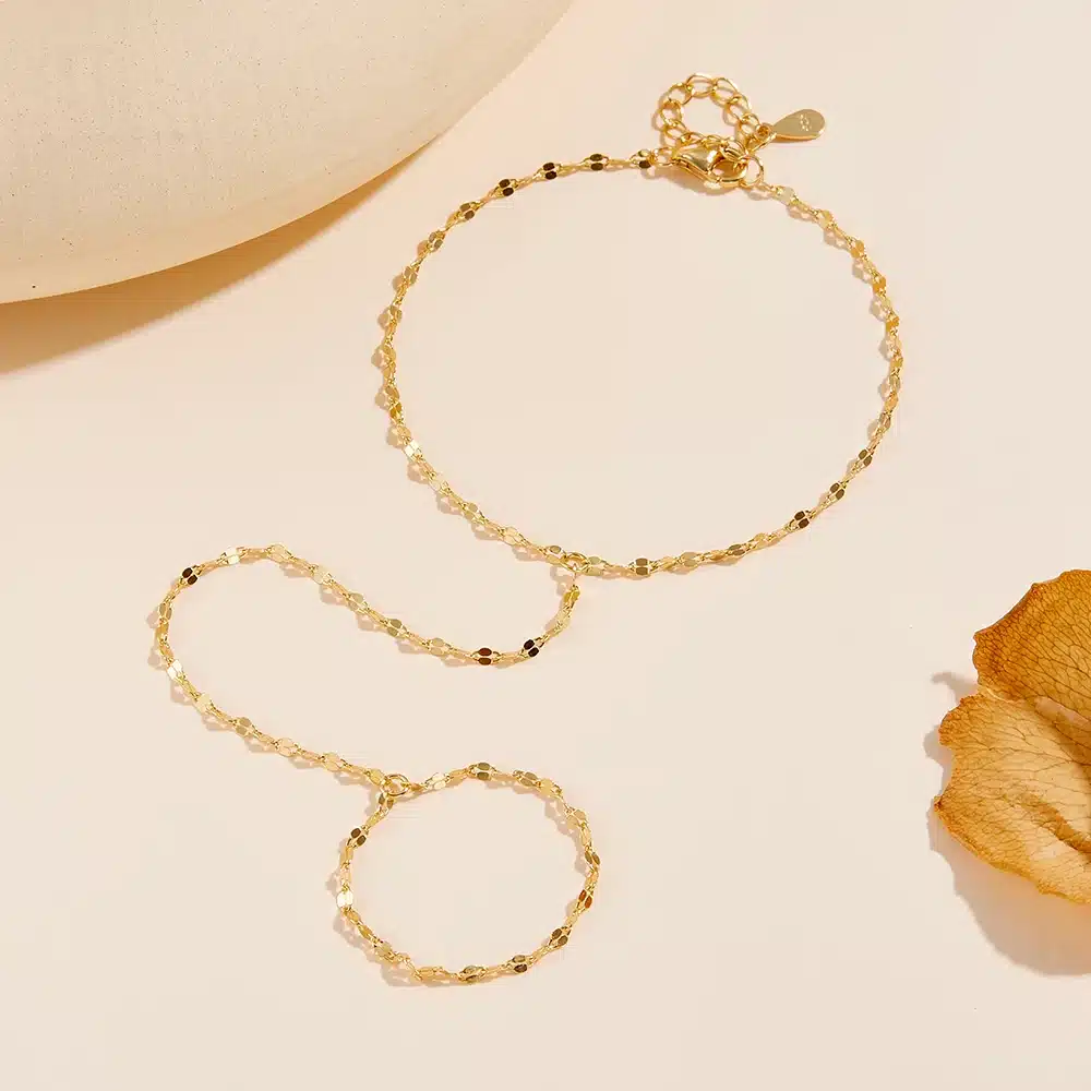 Be the first to review “Jewelry 925 Sterling Silver Gold Plated Ultra Bright Ceramic Tile Sleeve Chain Minimalist Finger Hand Chain Ring Bracelets” Cancel reply