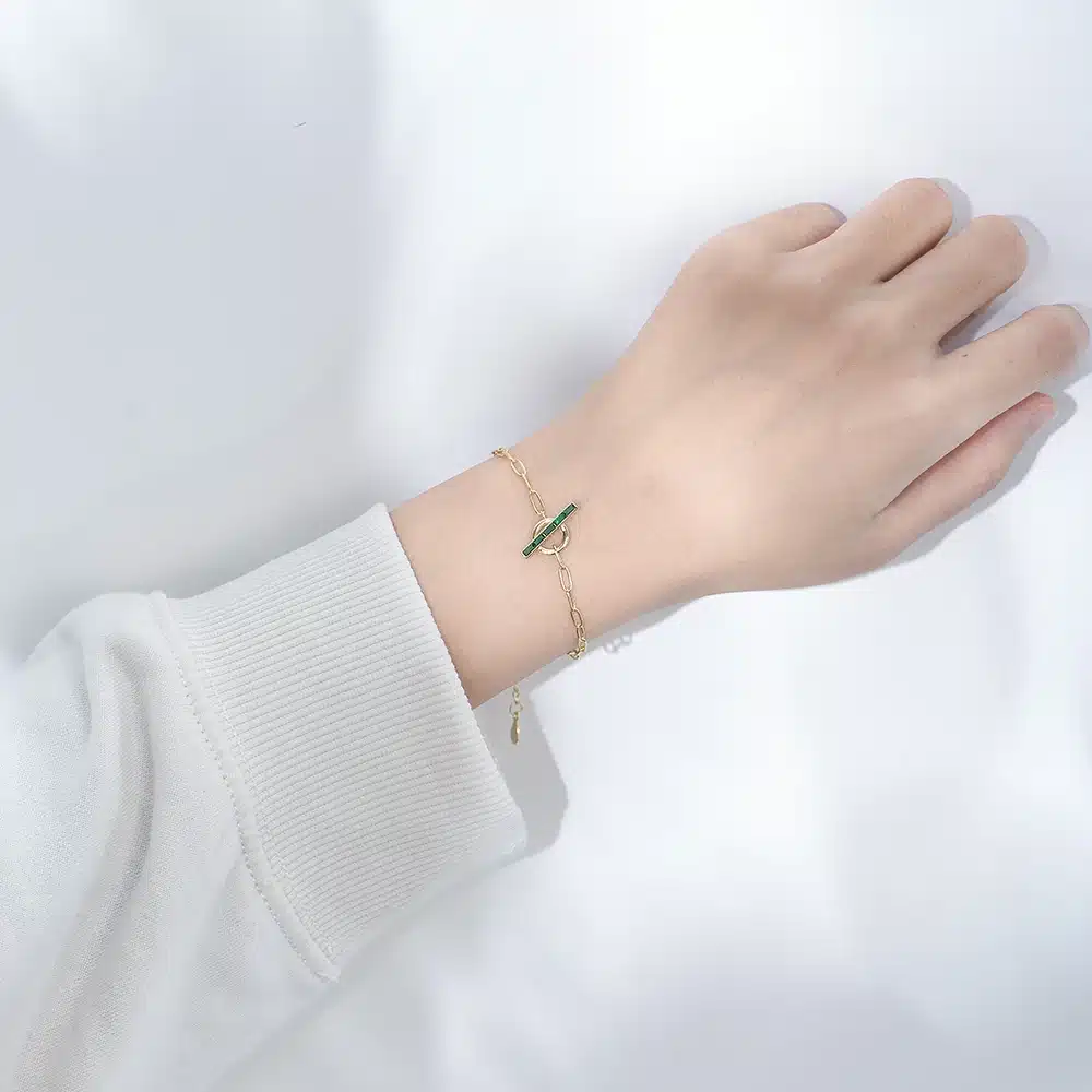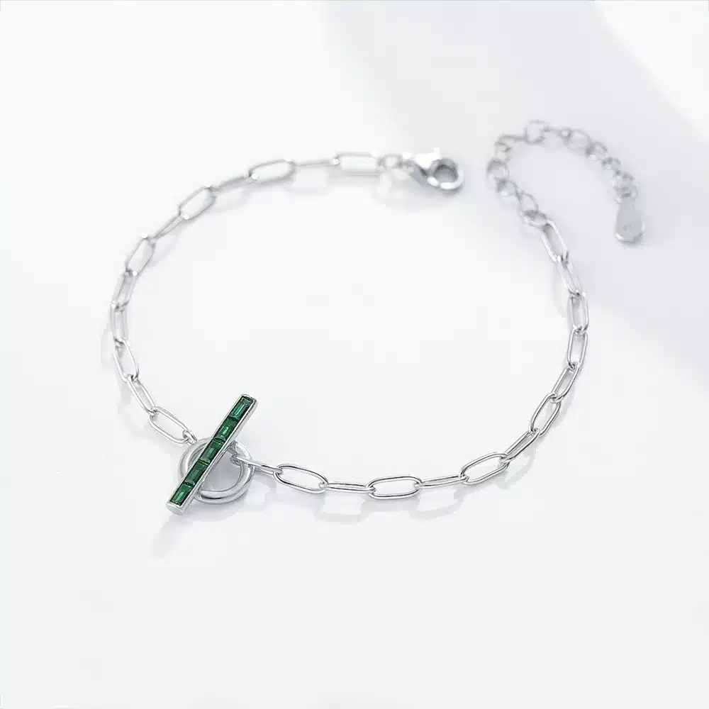 Jewelry 925 Sterling Silver Unique Design Ot Toggle Rectangular Green Charm Handcrafted Bracelet