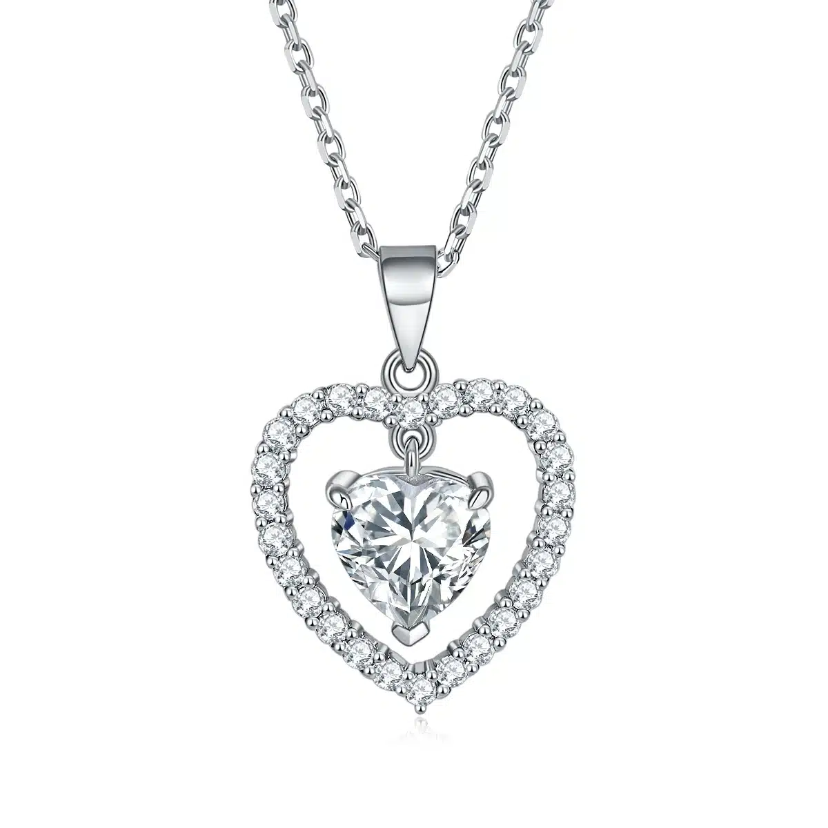 Jewelry Set Heart Halo Prong Setting Sterling Silver Set