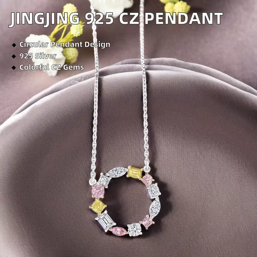 Jingjing Jewelry’s Customized 925 Sterling Silver Pendant Necklace Women’s Trendy Wedding Fine Jewelry Coloful CZ Zircon Parties