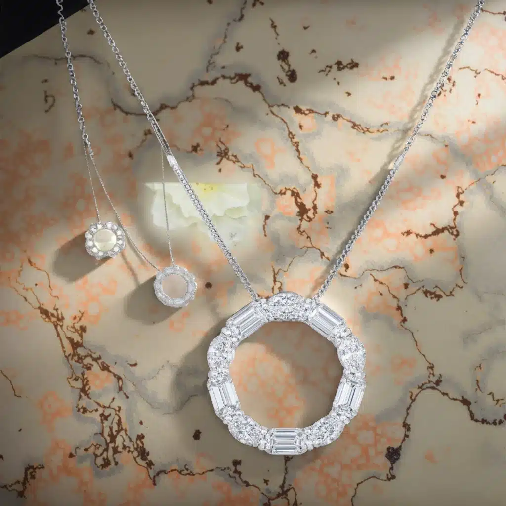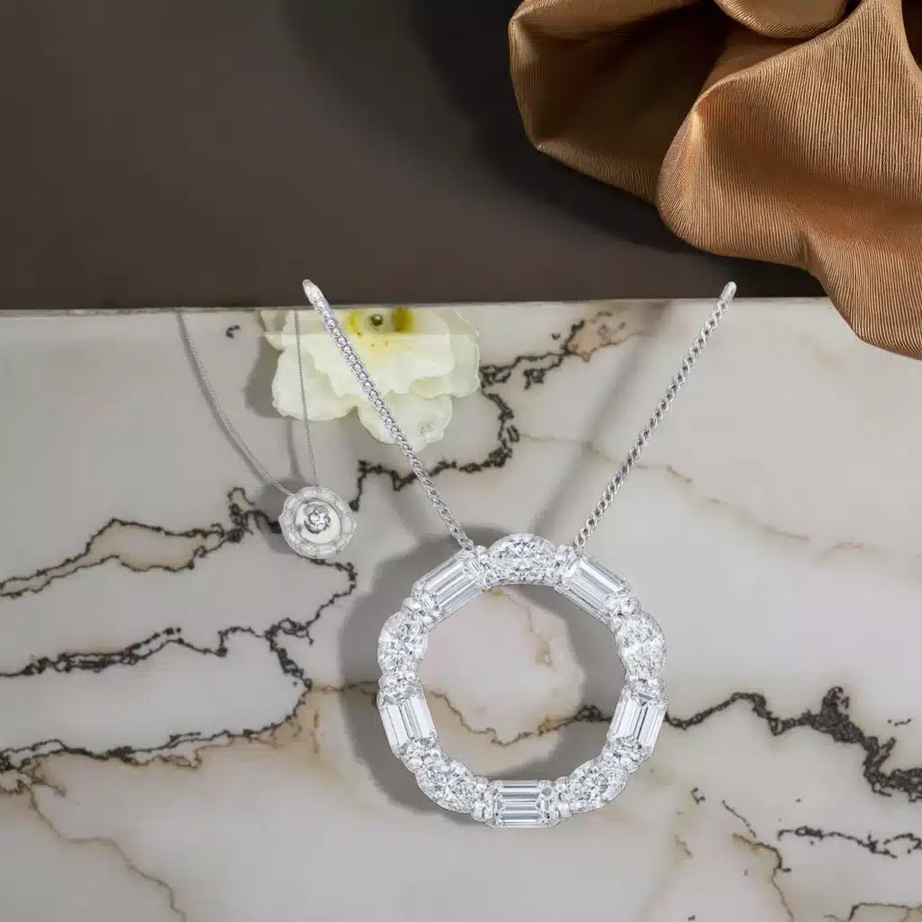 Key attributes Necklaces Type:Chains Gender:Unisex, Women’s, Children’s Jewelry Type:NECKLACES Diamond shape:Emerald Cut Jewelry Main Material:925 Sterling Silver Occasion:Anniversary, Engagement, Gift,