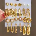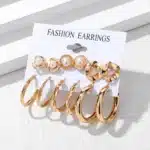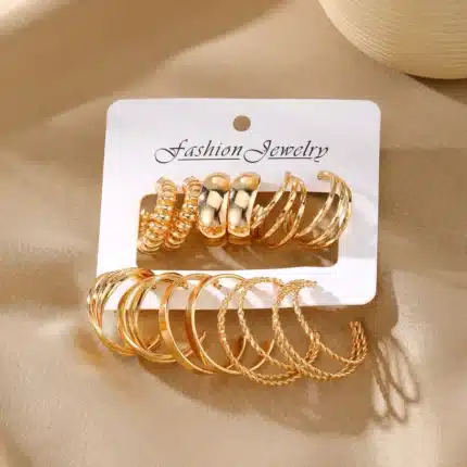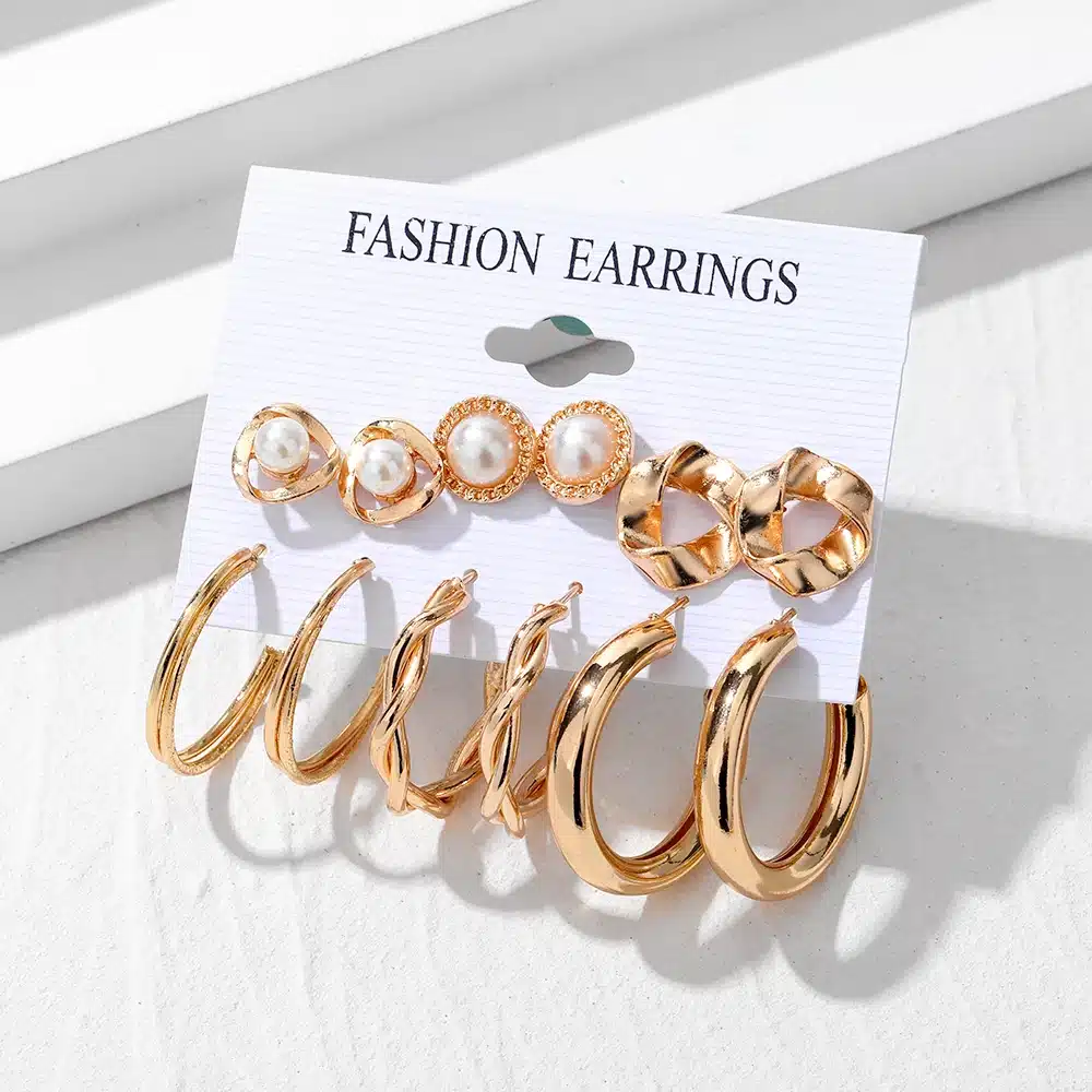 6Pairs/Set Hoop Earrings Set Gold Color Stud Earring Oversize Alloy Earring Women Vintage Fashion Jewelry Set