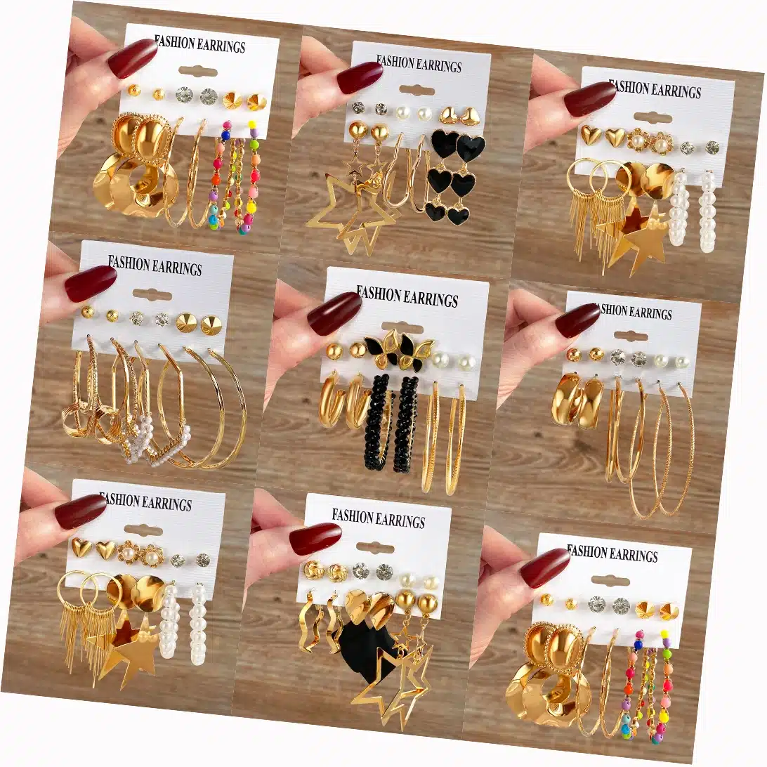 Be the first to review “KISSWIFE Punk Gold Color Star Geometric Pearl Hoop Earring Set for Women Jewelry Circle Drop Stud Earrings Set” Cancel reply