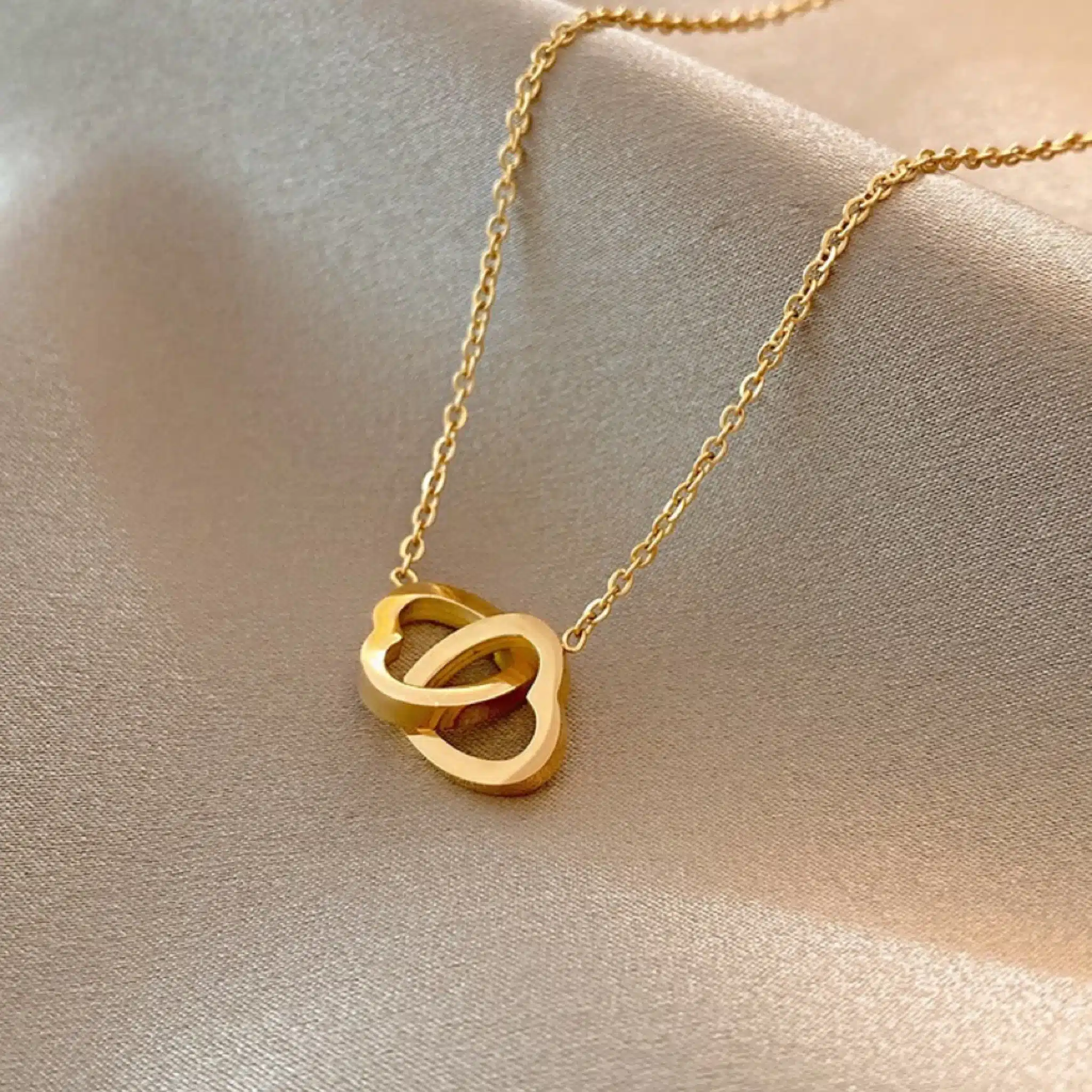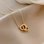 Be the first to review “Korean Style Double Ring Love Chain Gold Simple Pendant Titanium Steel Cross Connection Heart Necklace for Anniversary Jewelry” Cancel reply