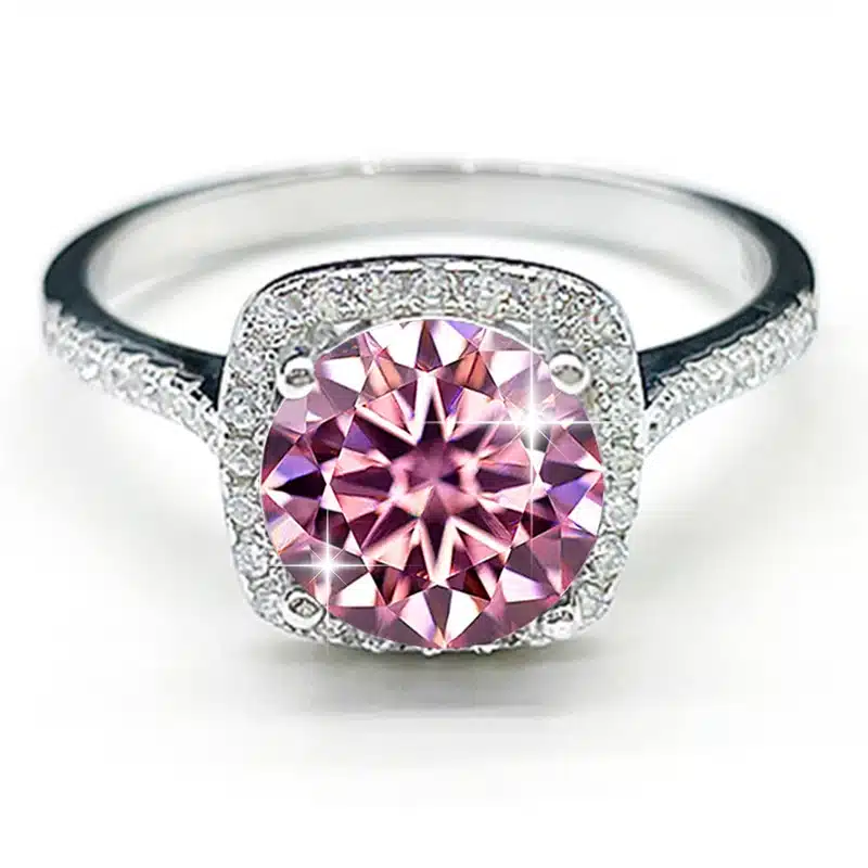 S925 Silver 1CT Round Brilliant Cut Rose Flower Engagement Half Eternity Colorful Moissanite Ring for Women