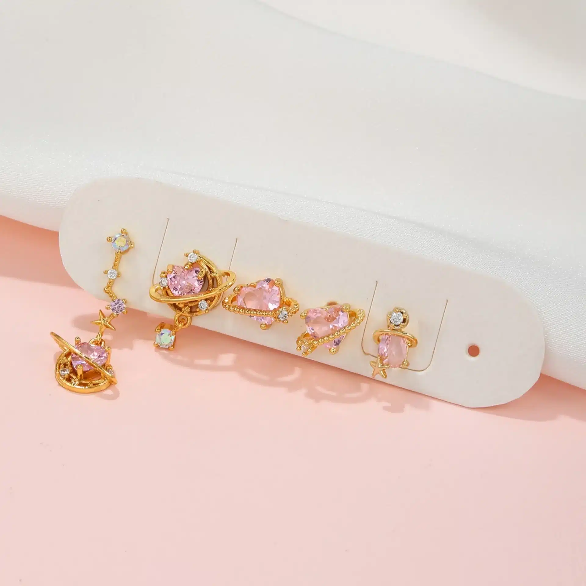 Laodun INS Hot Selling Trendy Girls Stud Earring Set Classic Gold Plated Elegant Heart Design Zircon Earring