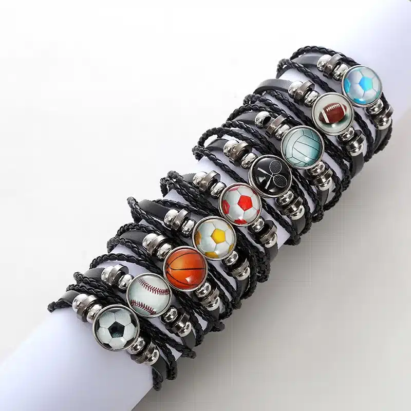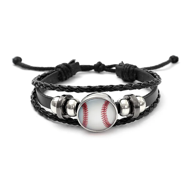 Leather Woven Bracelet Creative Beaded Bracelet Rugby Volleyball Football Baseball Fan Commemorative Gift Bracelets Wholesale