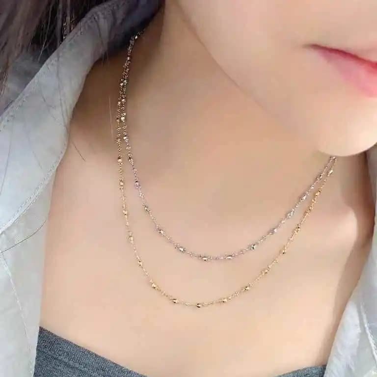 Key attributes Necklaces Type:Chains chain type:chopin chain Gender:Women’s Jewelry Type:Necklaces Jewelry Main Material:18K Solid Gold Style:Trendy Material Type:Rose Gold, White