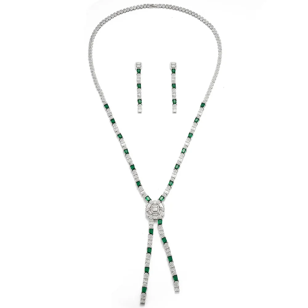 Long Necklace Earring Jewelry Sets for Women Wedding Party Zircon CZ African Dubai Bridal Jewelry