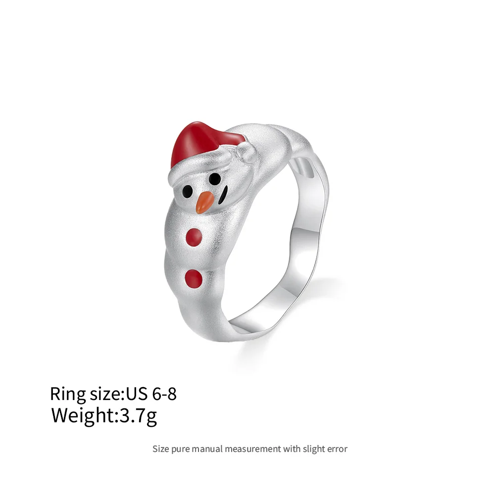 Lovely Holiday Gifts 925 Sterling Silver Christmas New Year Winter Snowman Enamel Cartoon Snowman Band Rings Jewelry for Girls