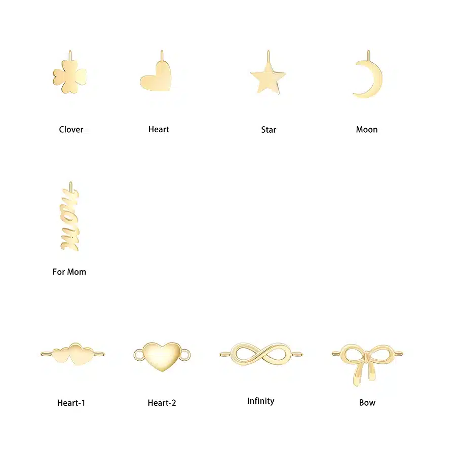 New Style 9k Solid Gold Star Heart Infinity Mom Clover Bow Charms Connectors for Jewelry Making Pendant