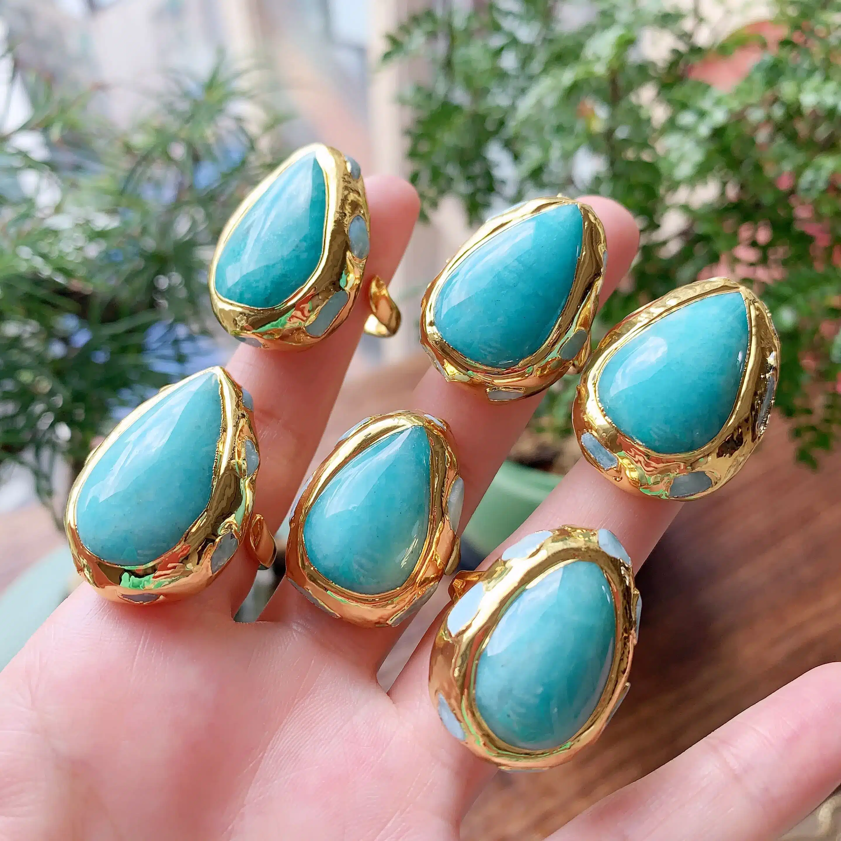 Key attributes Jewelry Main Material:nature stone Plating:Antique Copper Plated, Antique Bronze Plated Main Stone:amazonite Rings Type:Gemstone Rings Style:Vintage Occasion:Other, Anniversary,