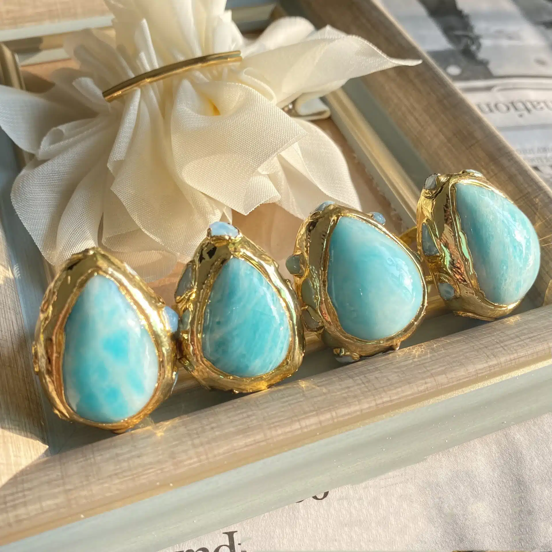 LS-B5657 High Quality Gold Finger Ring for Women Men Nature Amazonite Lapis Gemstone Ring Fashion Jewelry Rings New Trendy