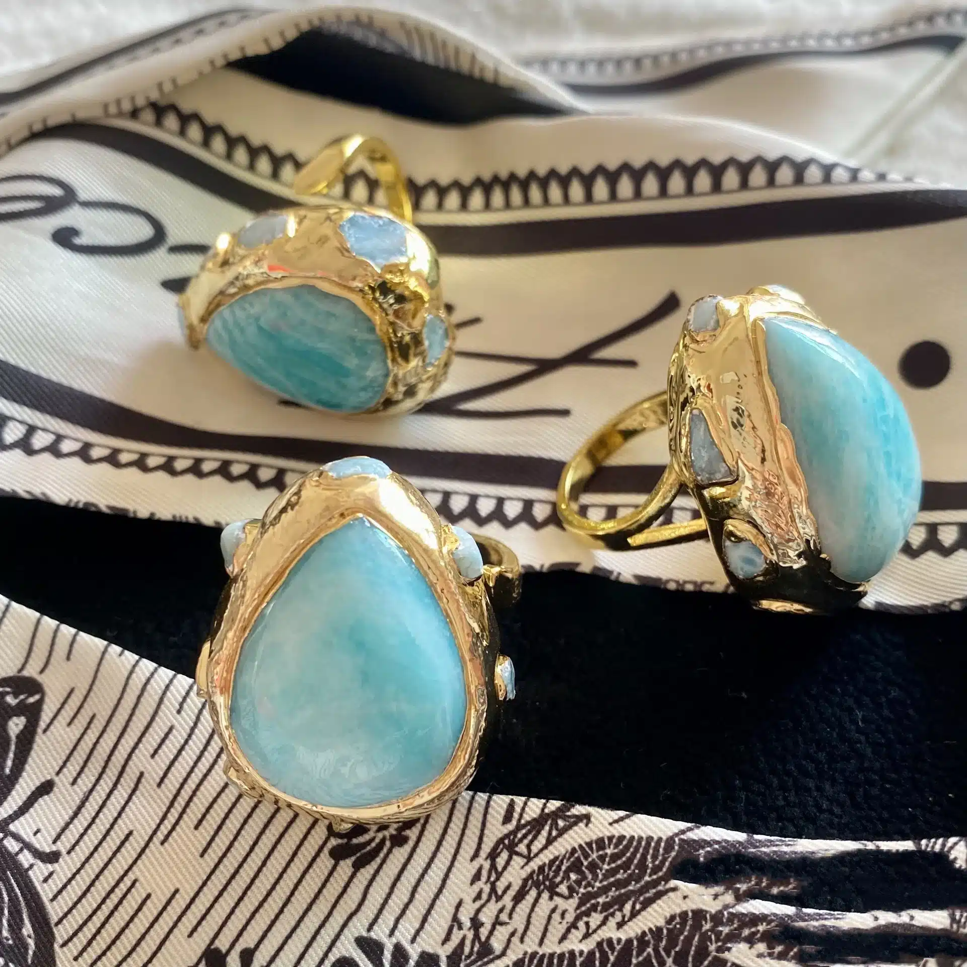 LS-B4058 Beautiful Raw Amazonite Ring Nature Gemstone Rings Fashion Jewelry Rings for Women and Girls