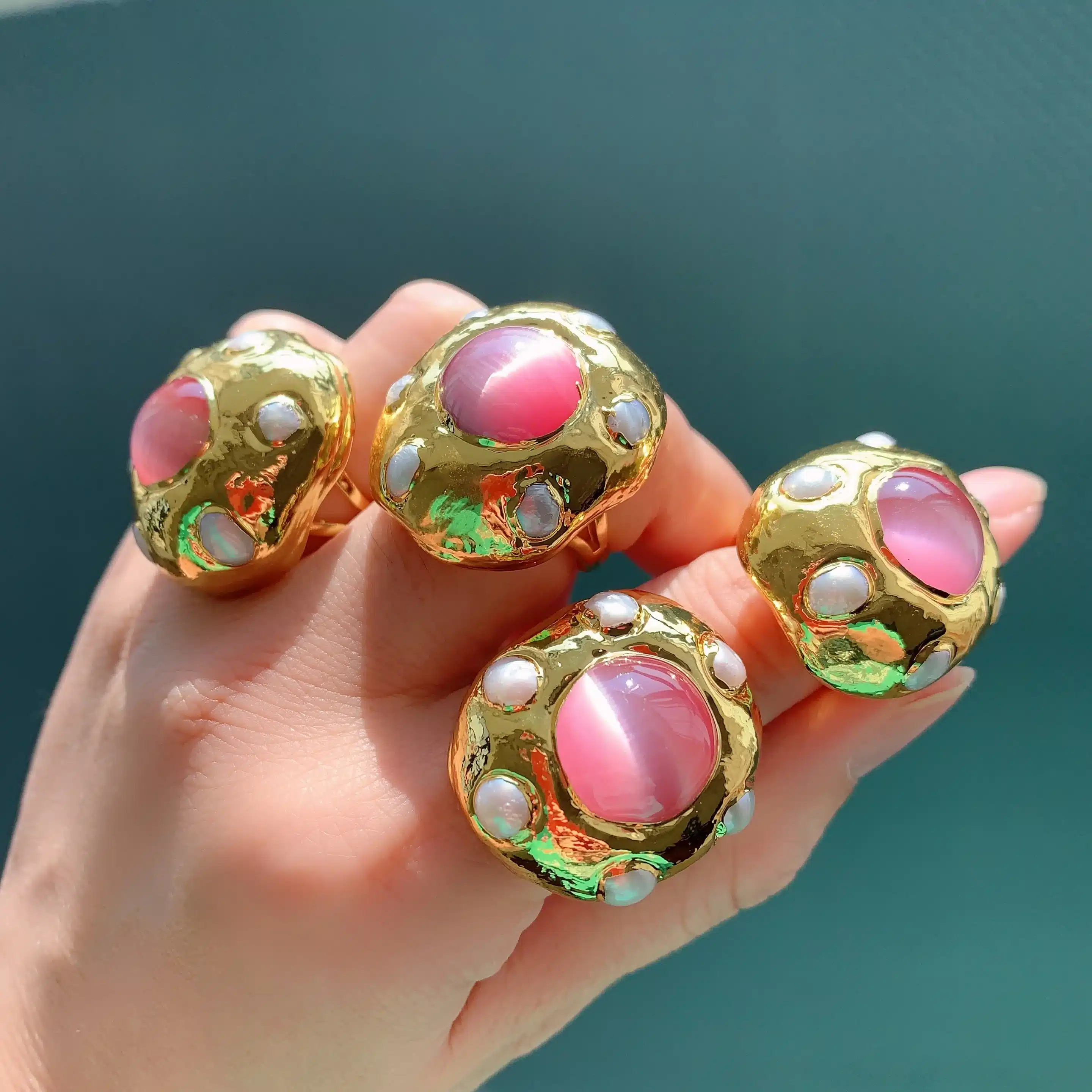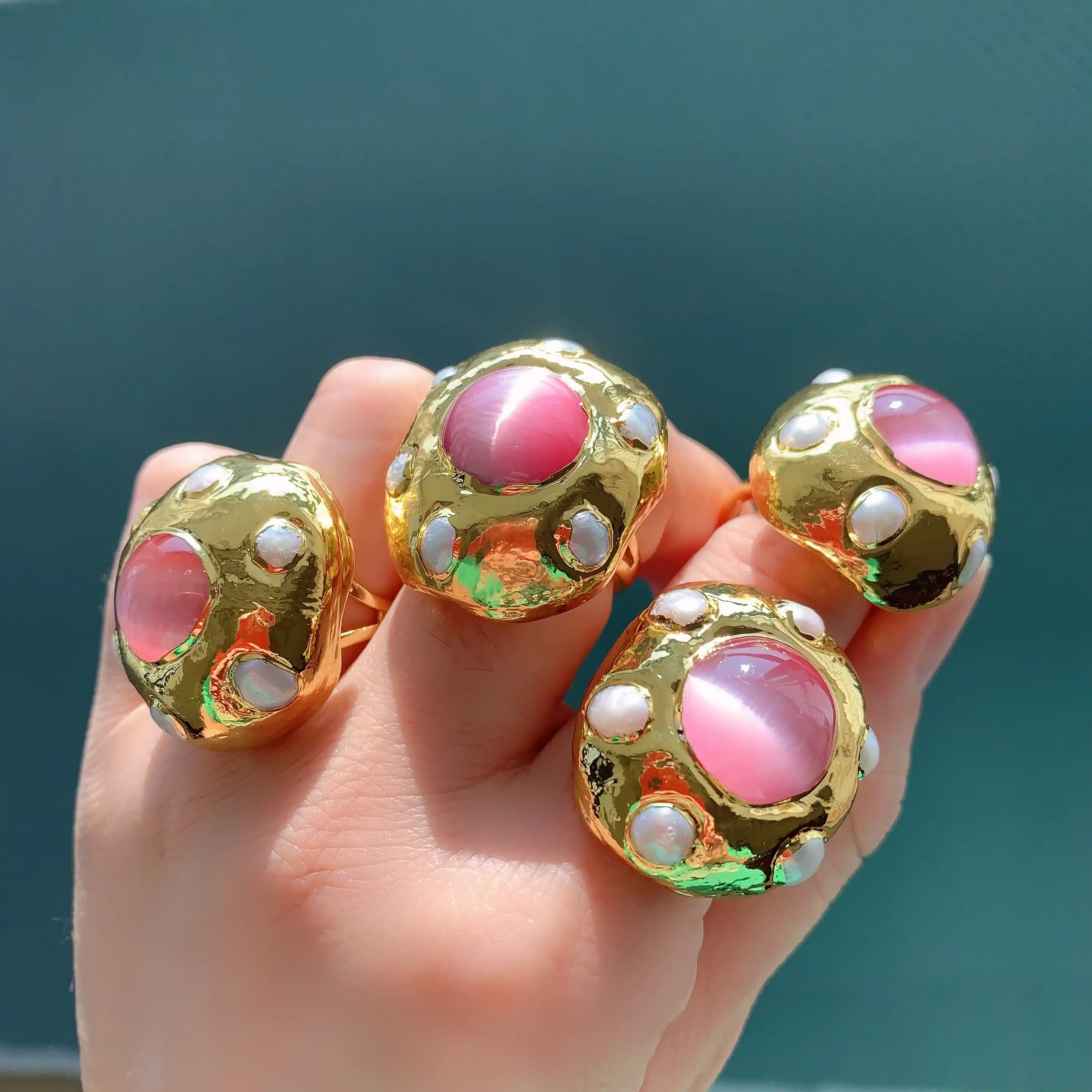 LS- C2286 Hot Sale Genuine Pearl Ring for Party Cuff Adjustable Ring for Women Gold Plated Ring