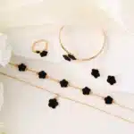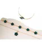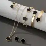 Be the first to review “Lucky Flower Jewelry Set Gold Plated Bracelet Five Leaf Grass Necklace Ring Earring With Alloy Material”