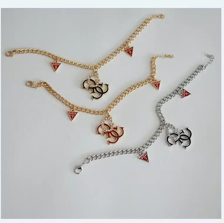 Luxury Brand 18K Gold Plated Diamond Guess Logo Metal Chain Bracelet for Men Women