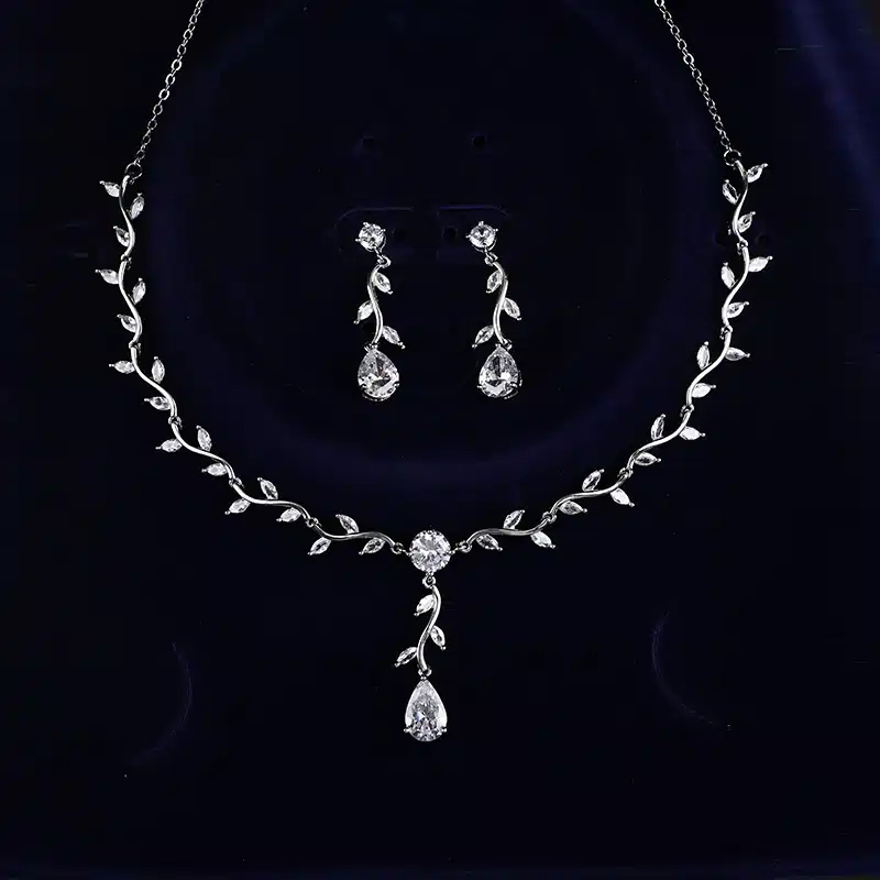 Key attributes Jewelry Main Material:Brass Plating:Platinum Plated Style:Romantic Jewelry Sets Type:Necklace and Earring Sets Jewelry Type:Jewelry Sets Inlay technology:Handmade Occasion:Anniversary,