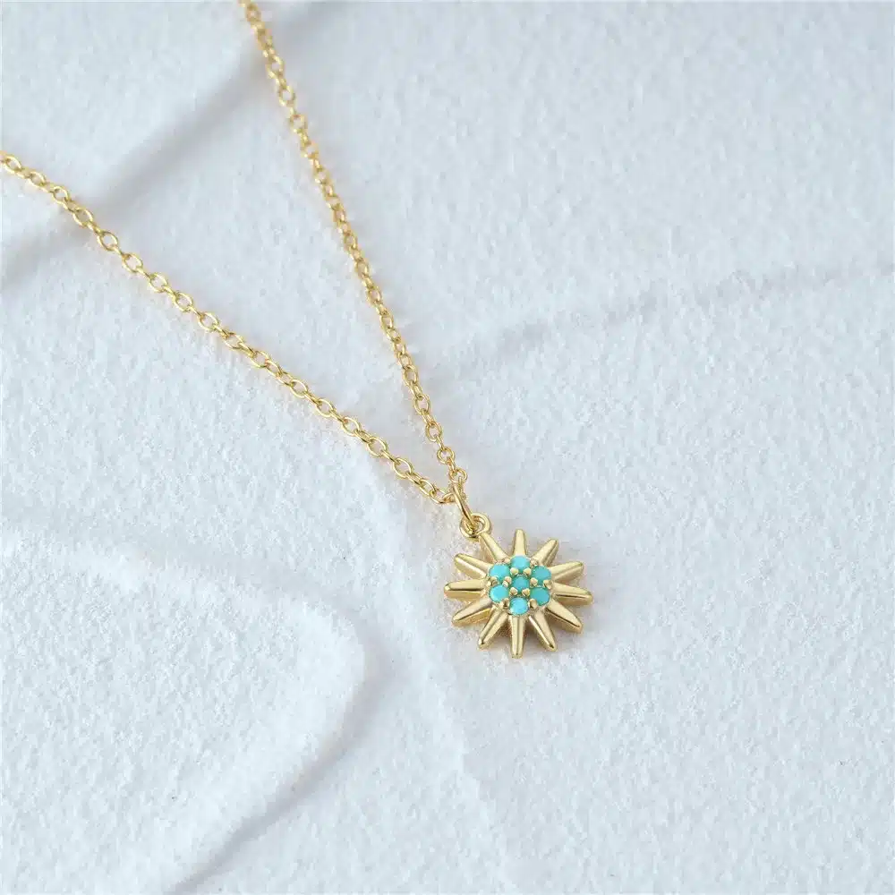 Be the first to review “Luxury Fine 925 Sterling Silver Gemstone 18K Gold Turquoise Butterfly Sunflower Round Circle Pendant Necklace for Women” Cancel reply