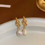 Be the first to review “Luxury High Fashion Drop Earrings Geometric Copper With Knotted Pearl Flower Pattern Earrings” Cancel reply