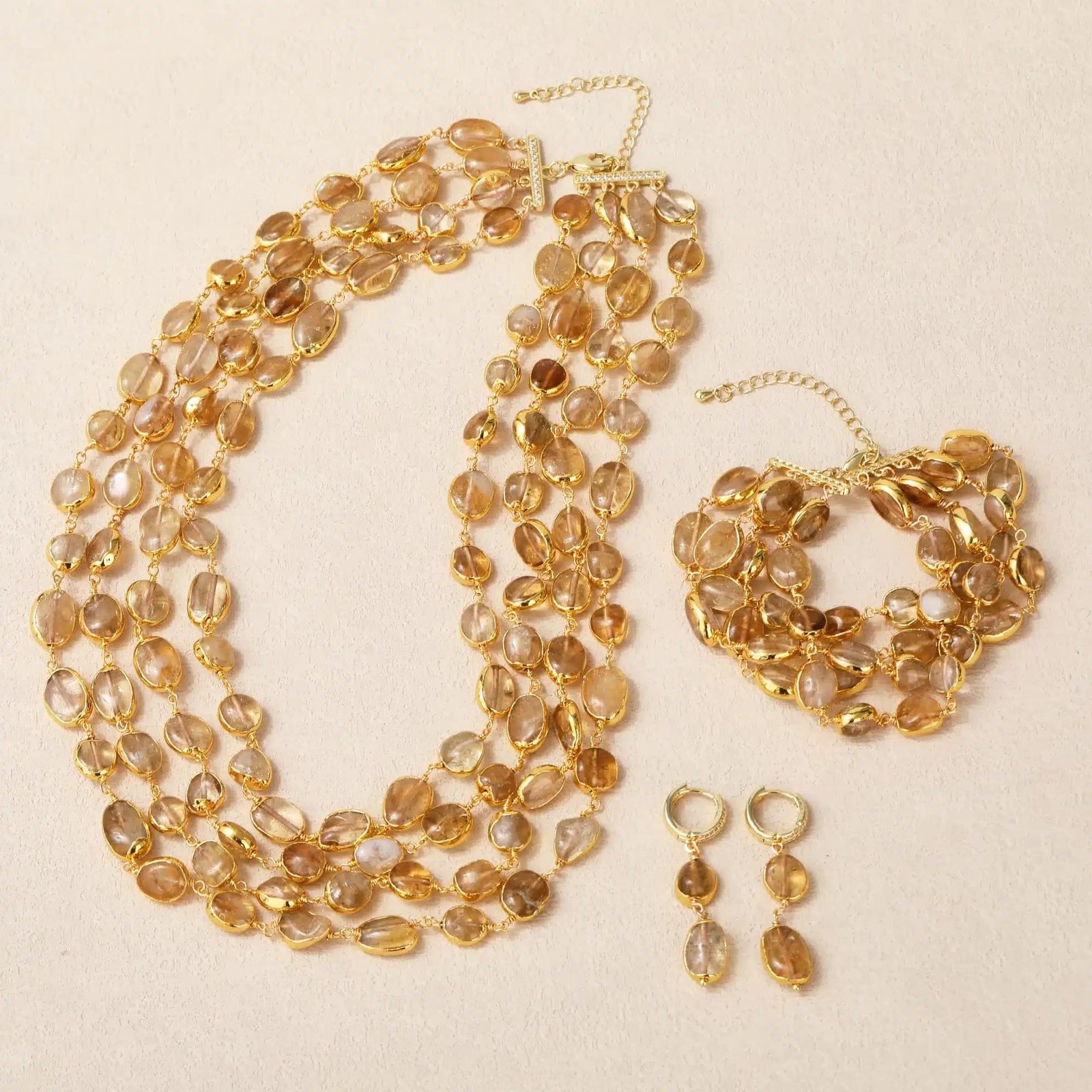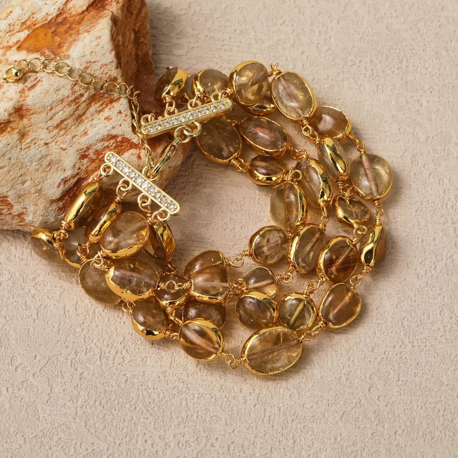 Be the first to review “Luxury Natural Crystal Quartz Citrine Multi-Layer Bracelet Vintage Style Brass Strand Bangle for Parties”