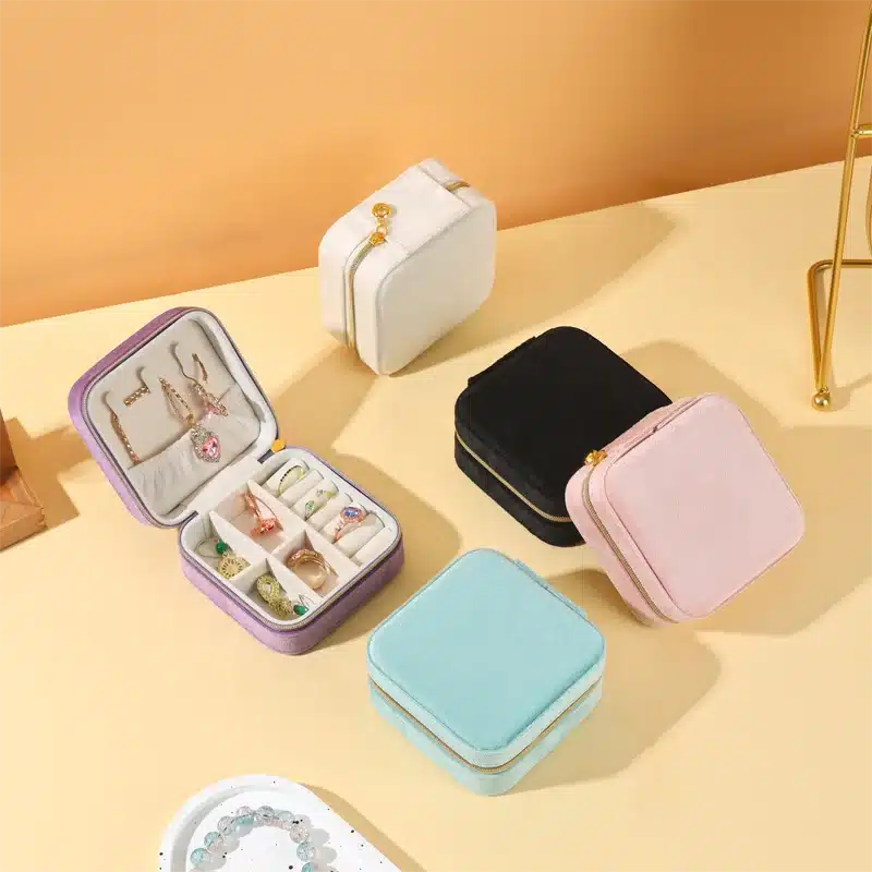 Be the first to review “Luxury Small Portable Jewellery Organizer Case Display Custom Earring Necklace Ring Velvet Travel Jewelry Storage Box Packaging”