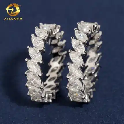 Pass Diamond Tester 925 Sterling Silver Marquise Hip Hop Eternity Band Moissanite Diamond Ring
