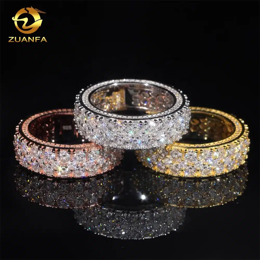 Wholesale Factory Price Moissanite Jewelry 925 Silver Iced Out 2 Row Diamond Cuban Rings Hip Hop Moissanite Ring