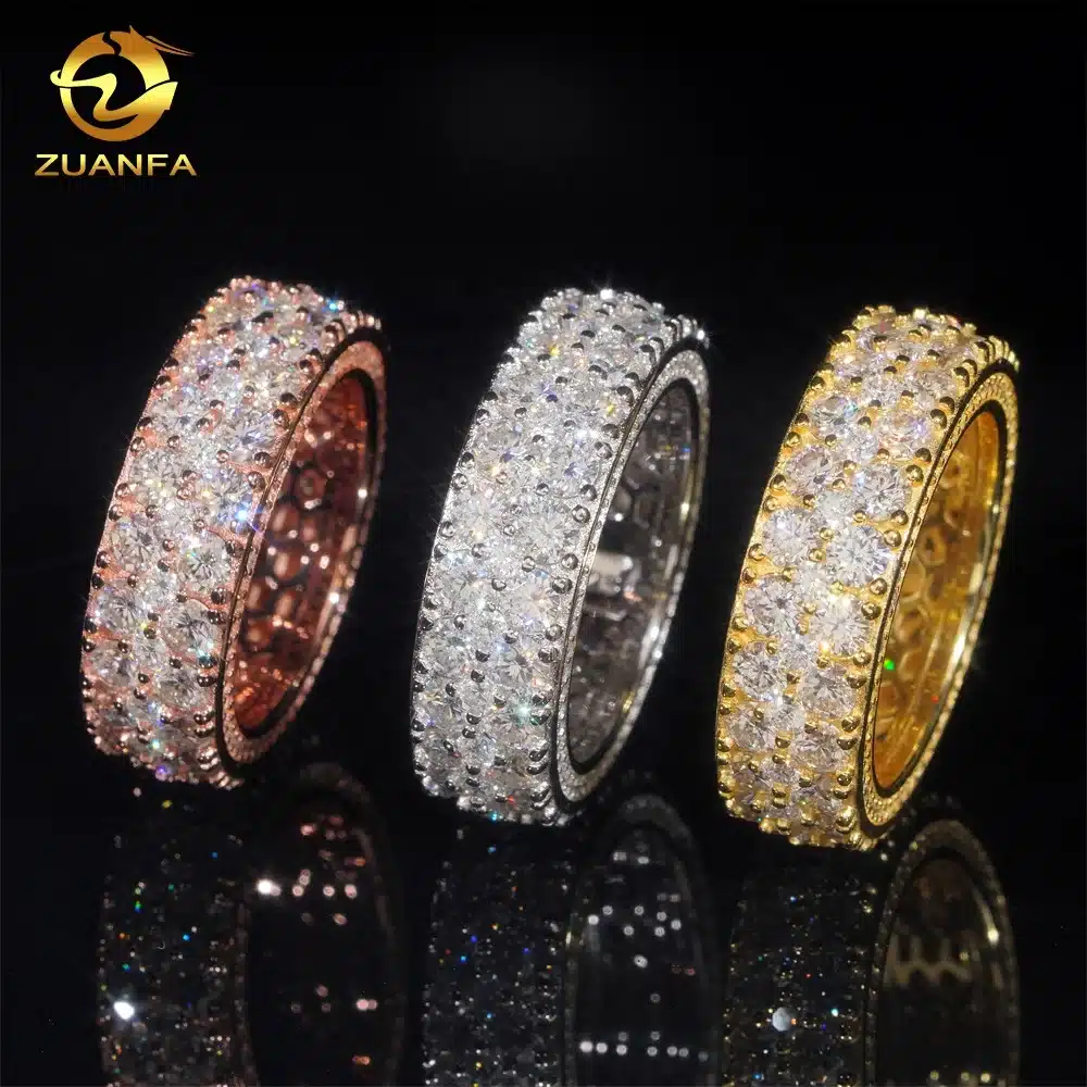 Luxury Unique Three Row Silver GRA Certificate Pass Diamond Tester White Gold Moissanite Ring