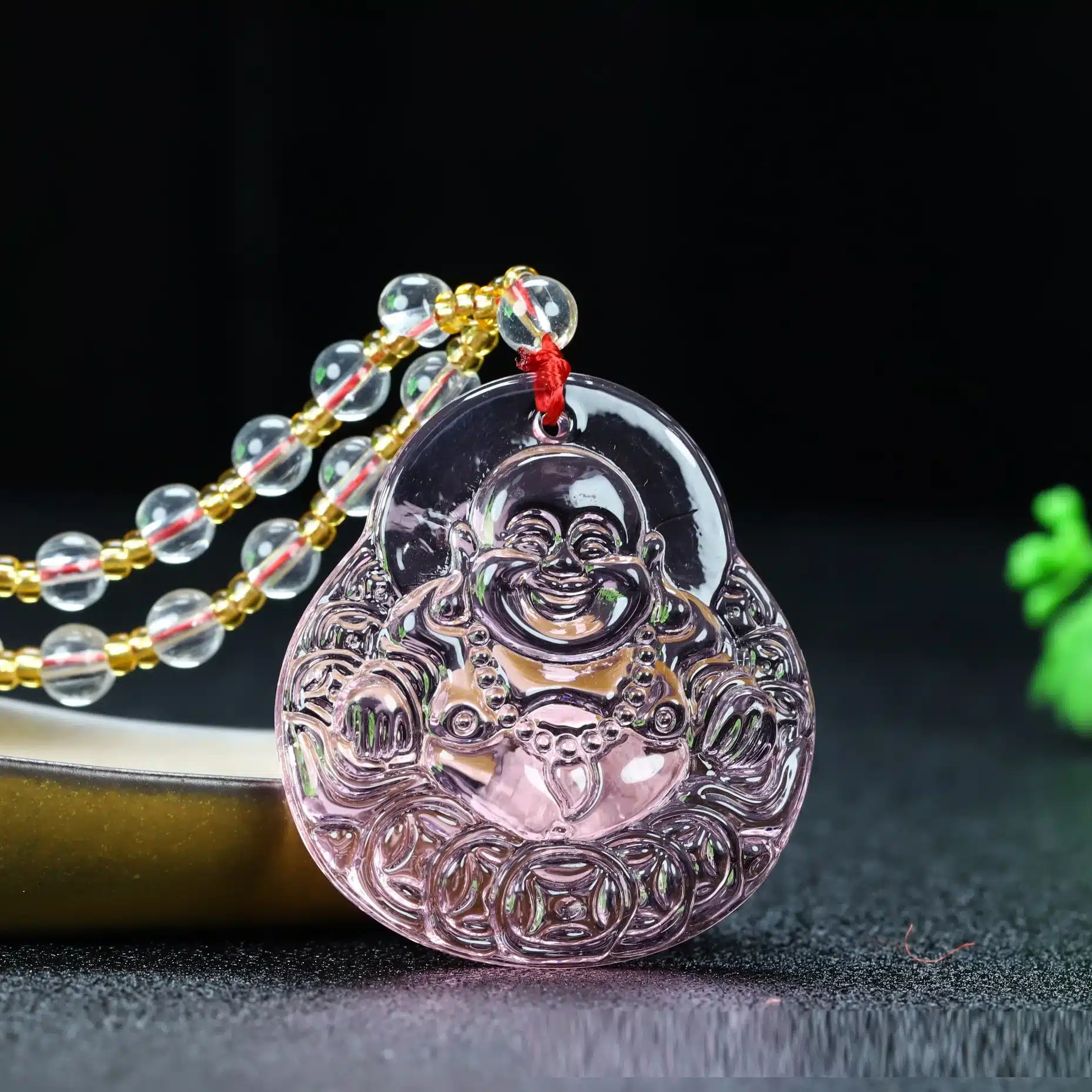 Maitreya Buddha Pendant Glass Sweater Necklace Vintage Diamond-studded Guanyin Pixiu Buddhism Imitation Jade Pendant Necklace