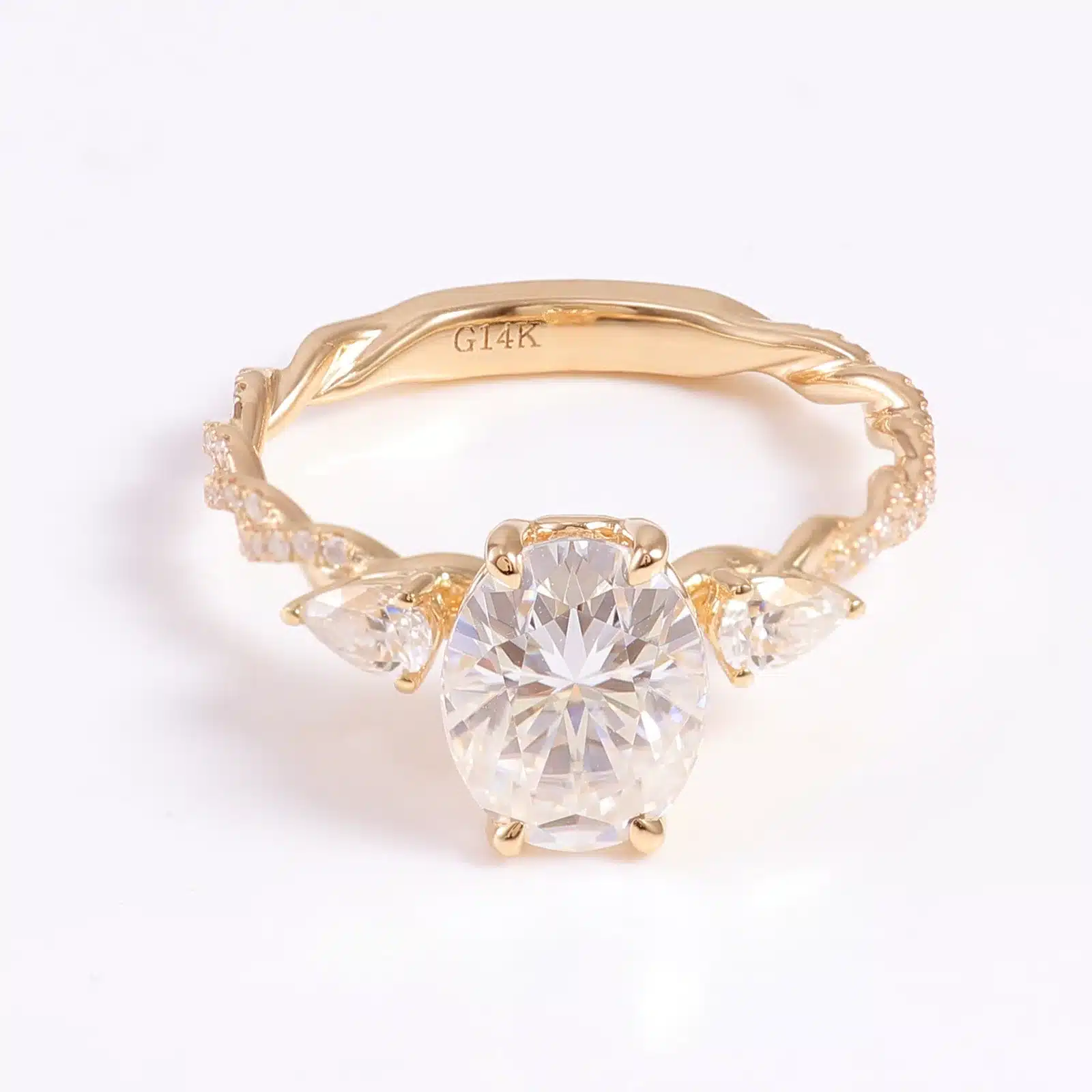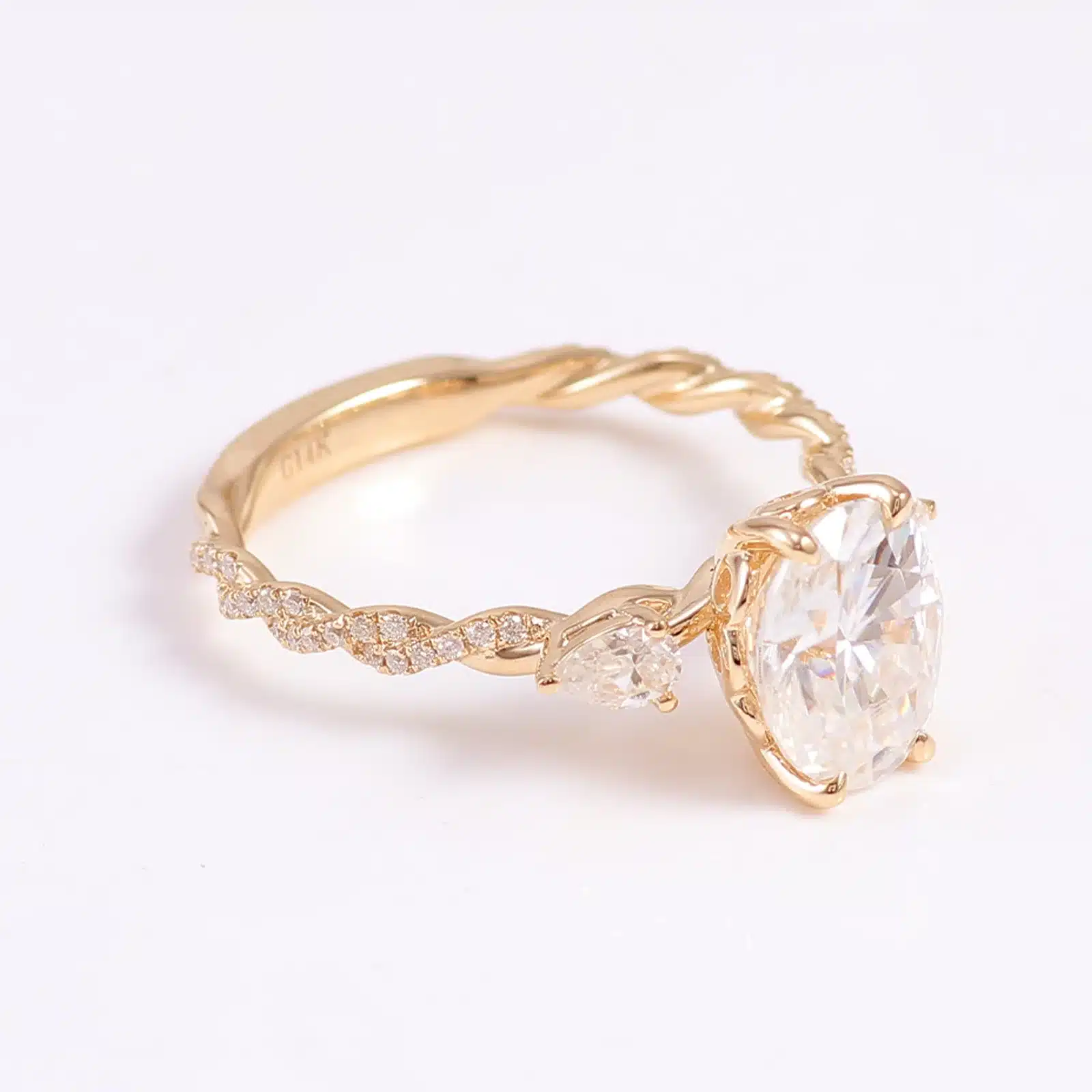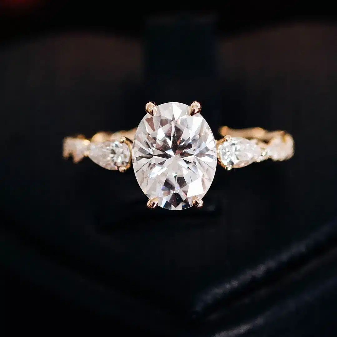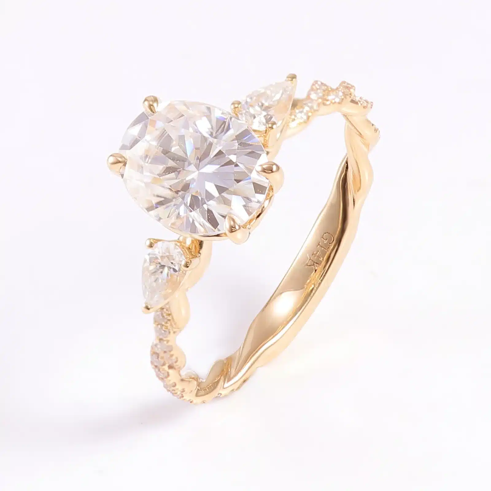 18K Gold Custom 2ct Moissanite Diamond Rings Customizable Oval Artificial Cultivated Powder Moissanite Ring