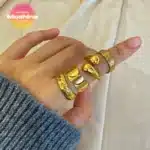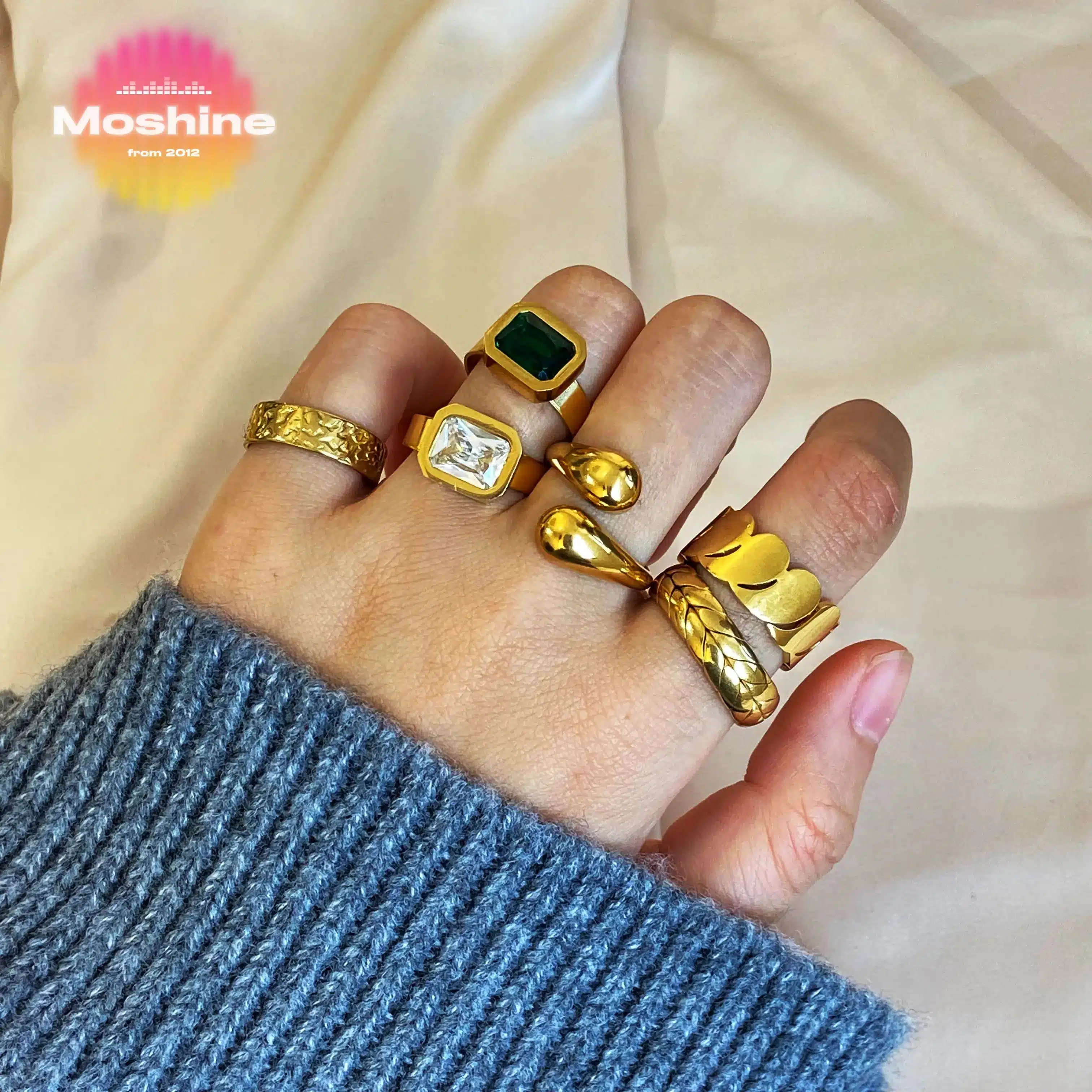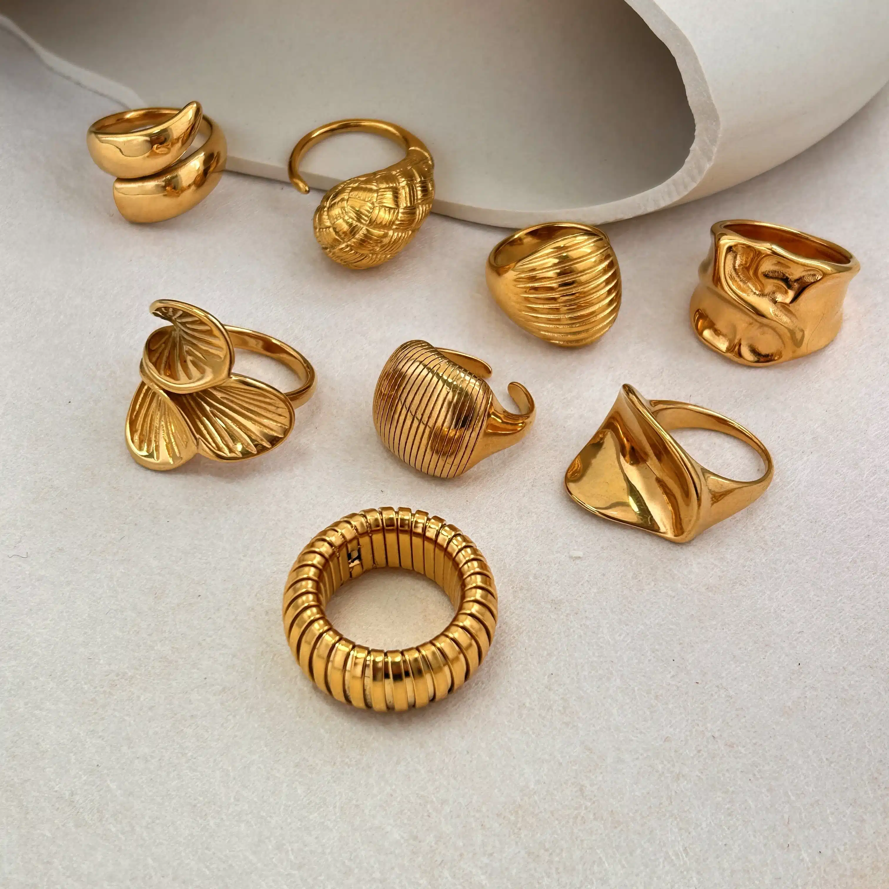 Women Fine 18k Gold Plated Stainless Steel Rings Irregular Fine Jewelry Opening Texture Polished Ring
