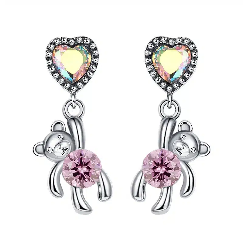 Be the first to review “Natuna Silver 925 Bear Pink Zircon Luxury Chic Heart Shape Korean Style Hoop Earrings for Women”