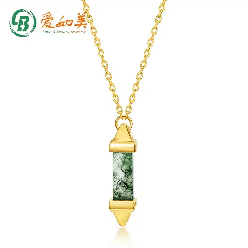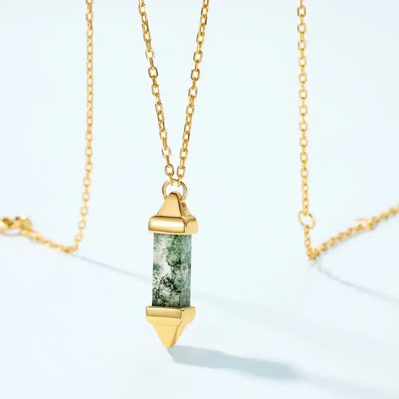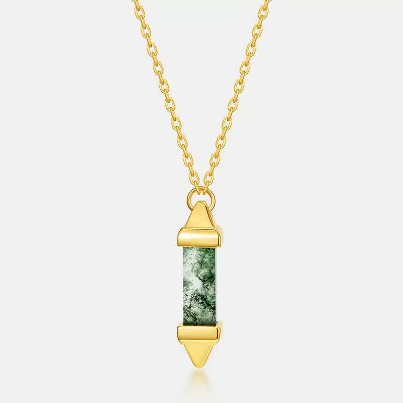 2026 New Trendy Gold Plated Sterling Silver Green Moss Agate Pendant 925 Silver Gemstone Jewelry Custom