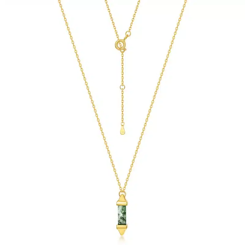 Factory Wholesale Jewelry Oem Odm S925 Sterling Silver Necklace Natural Moss 14k Gold Plated Long Chain