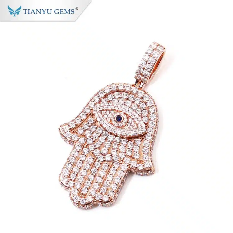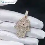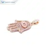 New Arrival Customized Moissanite Diamond Charm Hamsa Hand Rose Gold Pendant Necklace TYP19