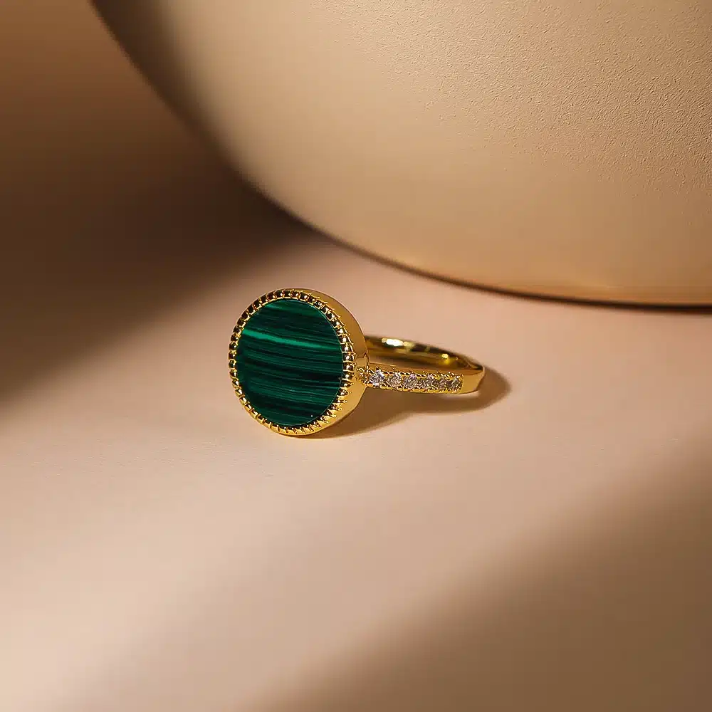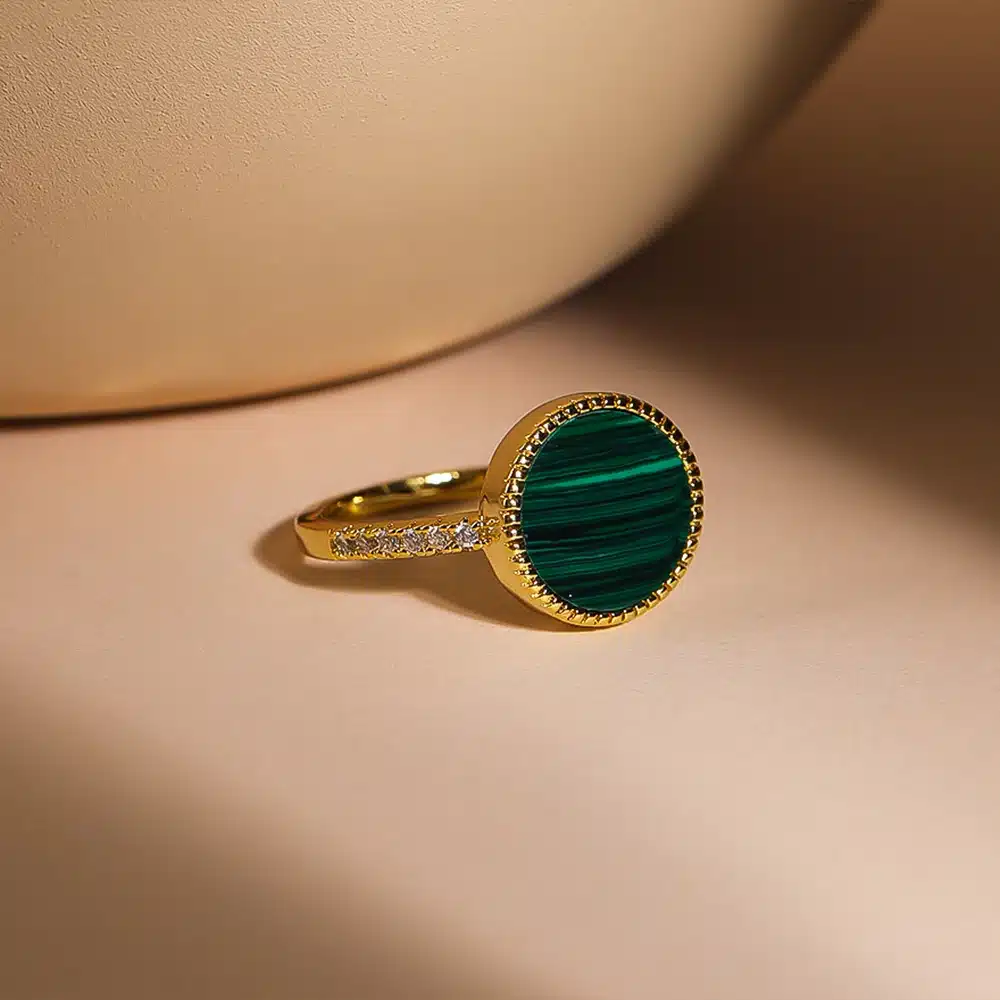 New Arrival Handmade 925 Sterling Silver Ring 18K Gold Plated with Filming Setting Malachite Gemstone Inlay Shape Gift Jewelry