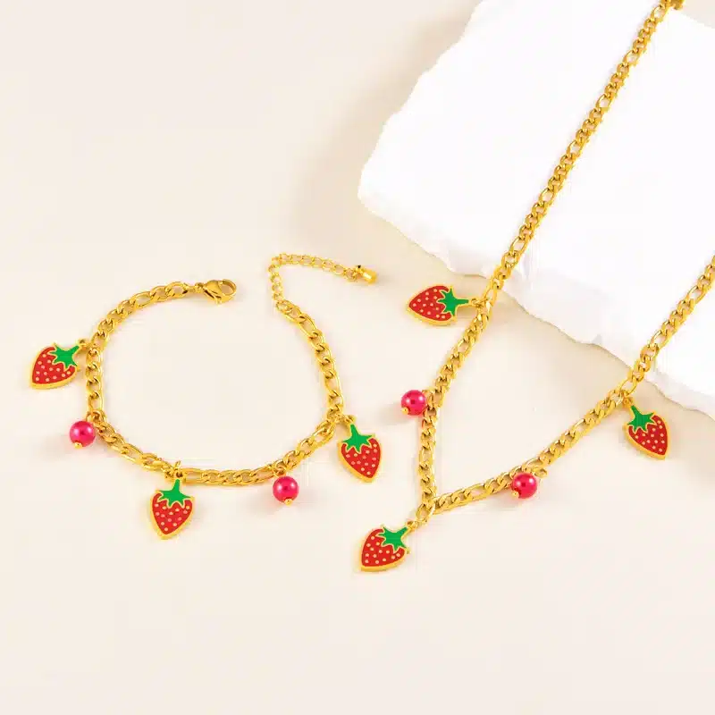 New Arrival Strawberry Earrings and Necklace Set Fruit Cute Sets for Women Stylish Light Luxury Stainless Steel Jewelry Bracelet